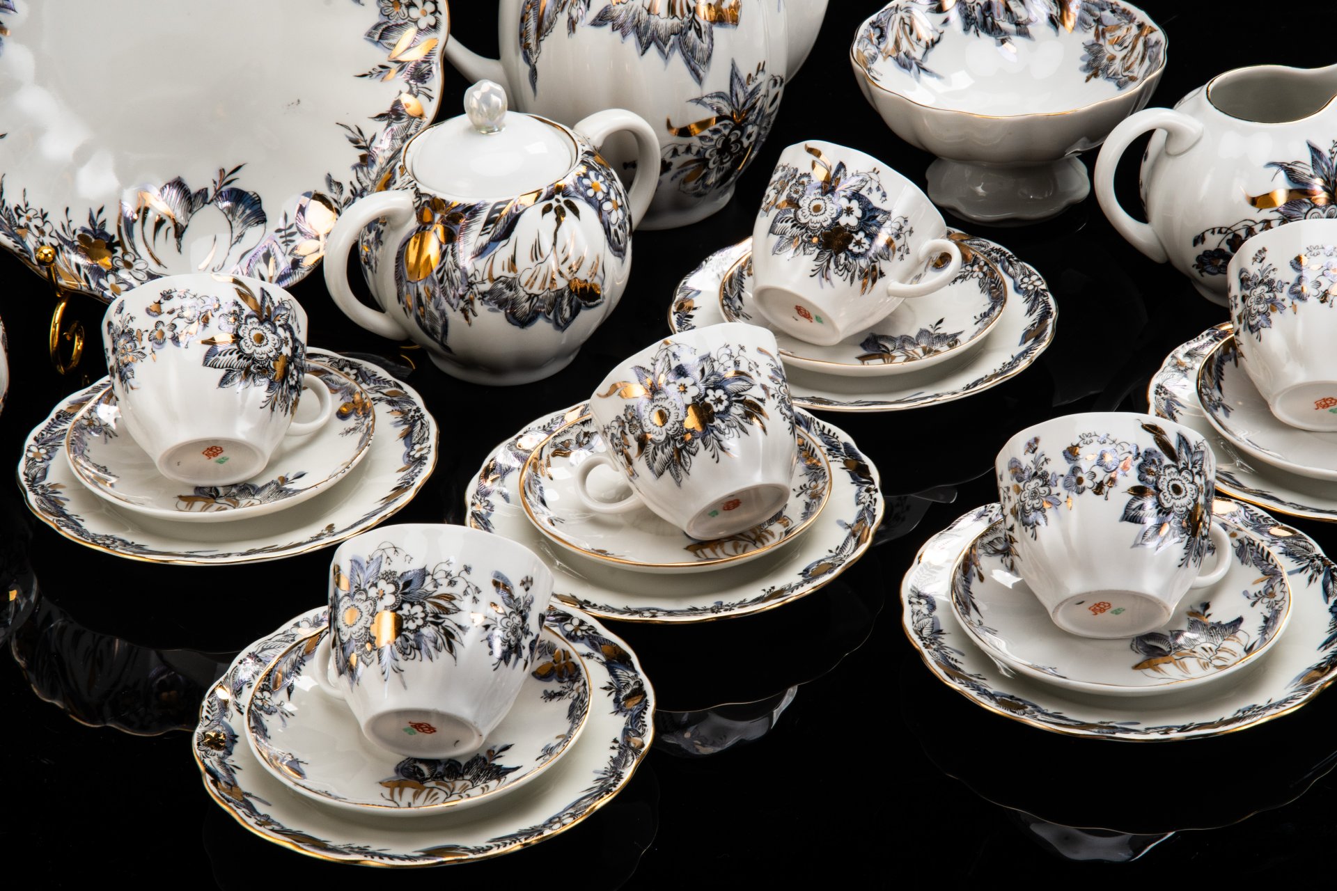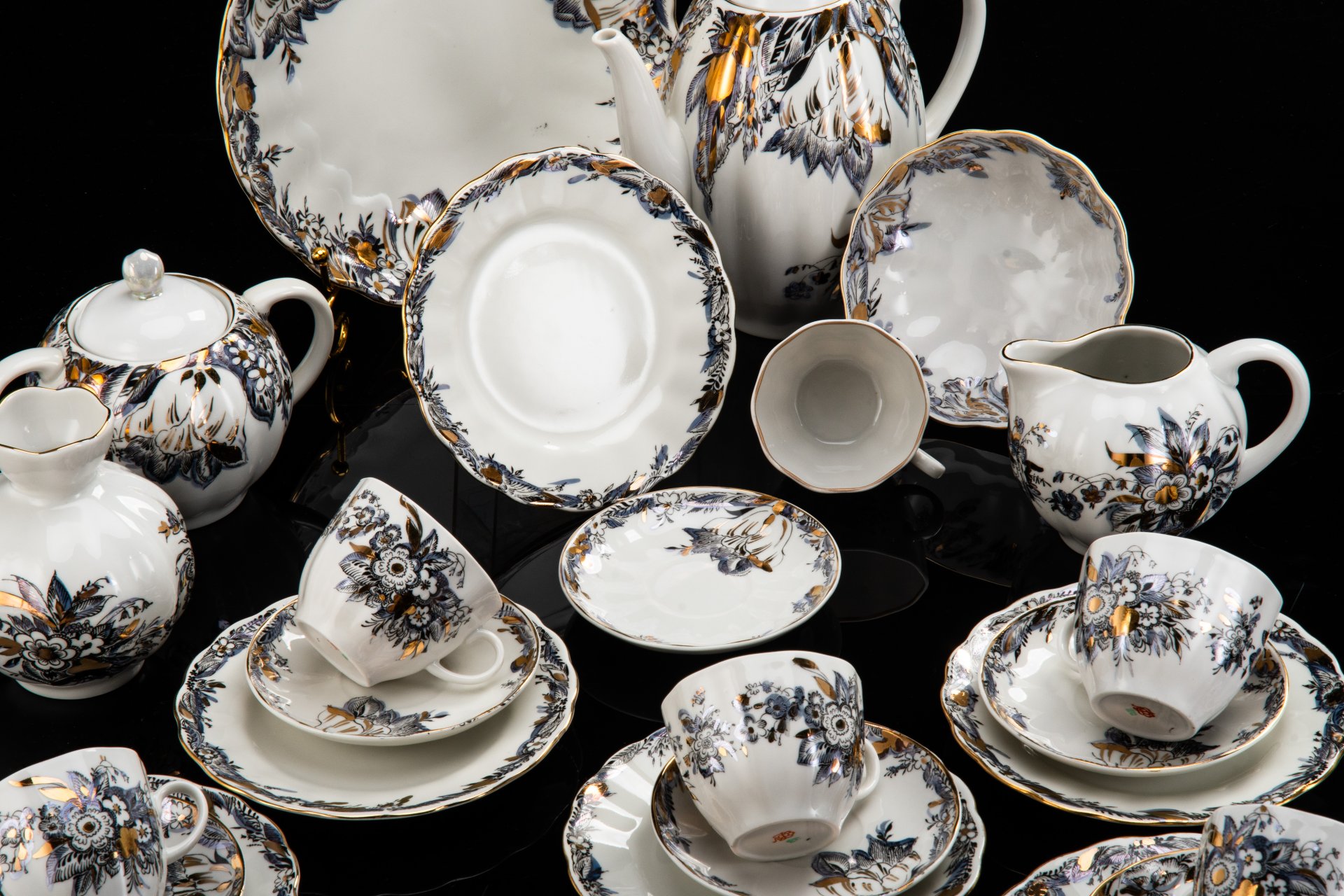 Сервиз кофейный с монохромным цветочным декором на 6 персон (15 предметов), фарфор, деколь, золочение, Kahla, ГДР, 1960-1990 гг.