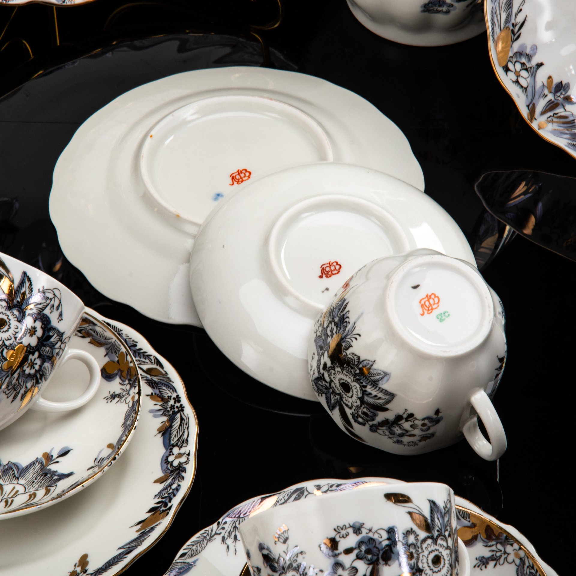 Кофейный музыкальный сервиз на 6 персон (15 предметов), фарфор, металл, деколь, золочение, Япония, 1980-1990 гг.