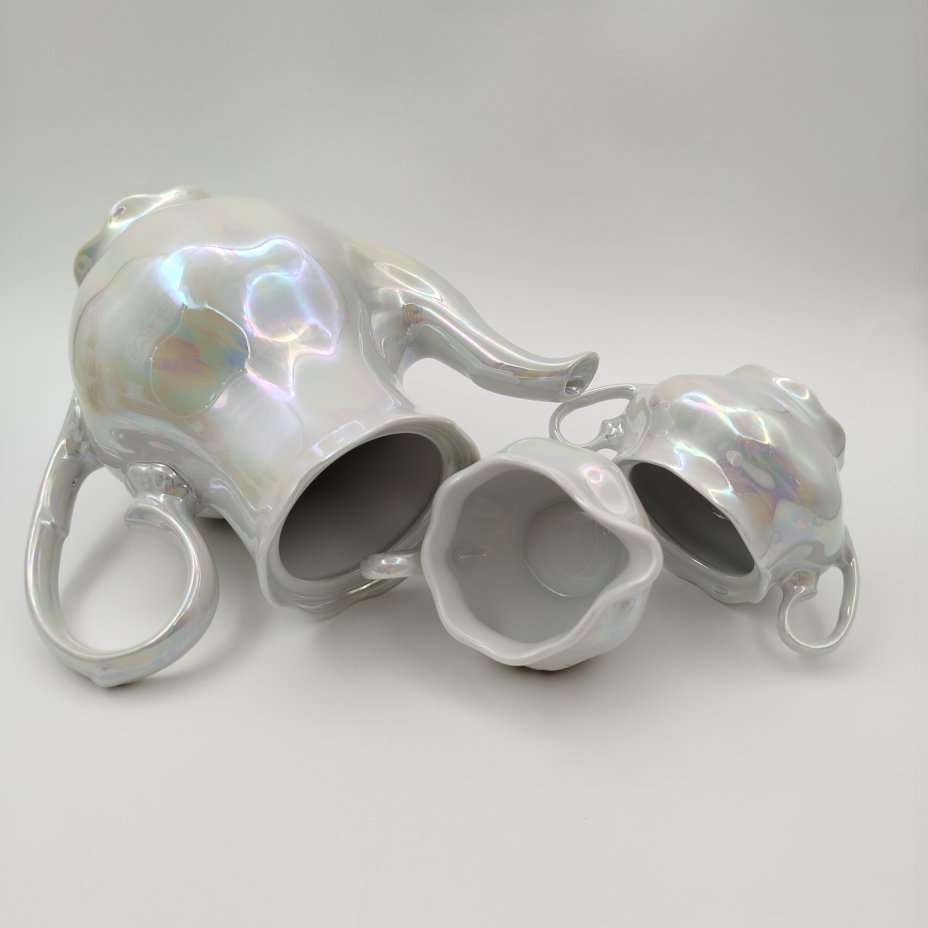 Набор чайно-кофейный, украшенный рельефным декором в виде цветочных гирлянд, (кофейник, чайник, молочник, сахарница), Orfèvrerie Gallia, металл, серебрение, фарфор, Christofle, Франция, 1908-1921 гг.