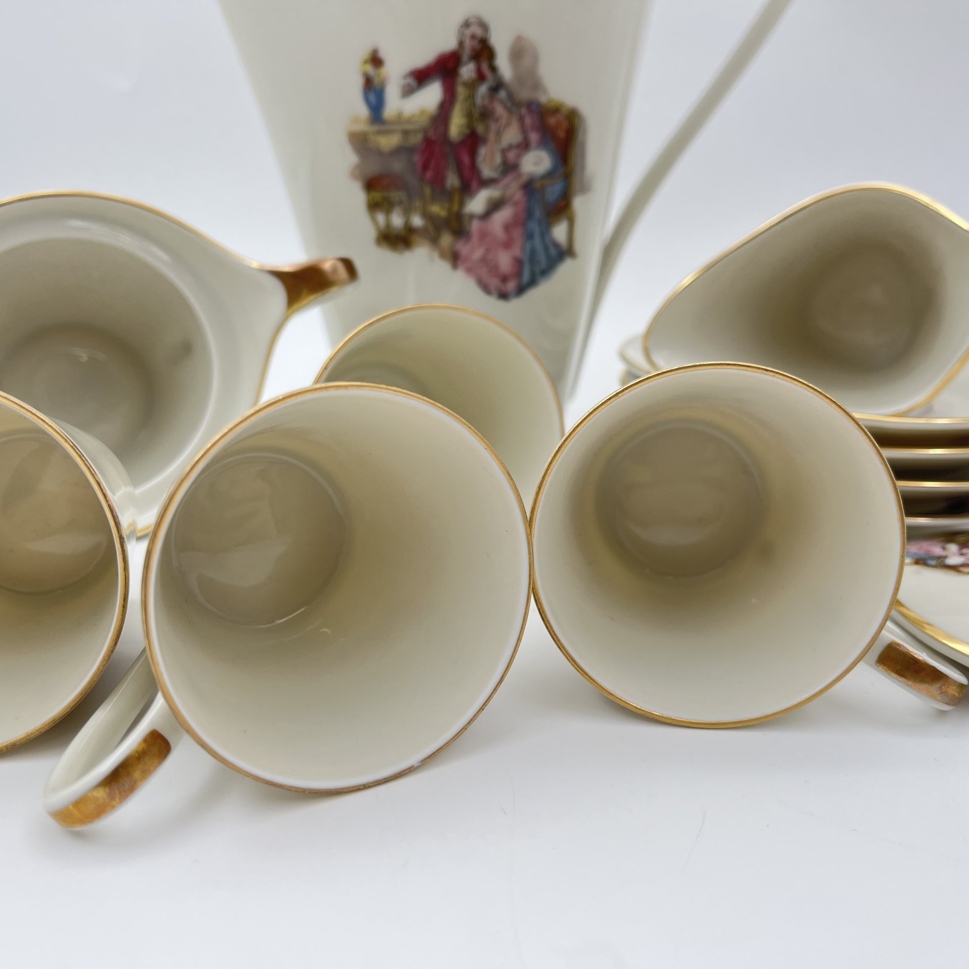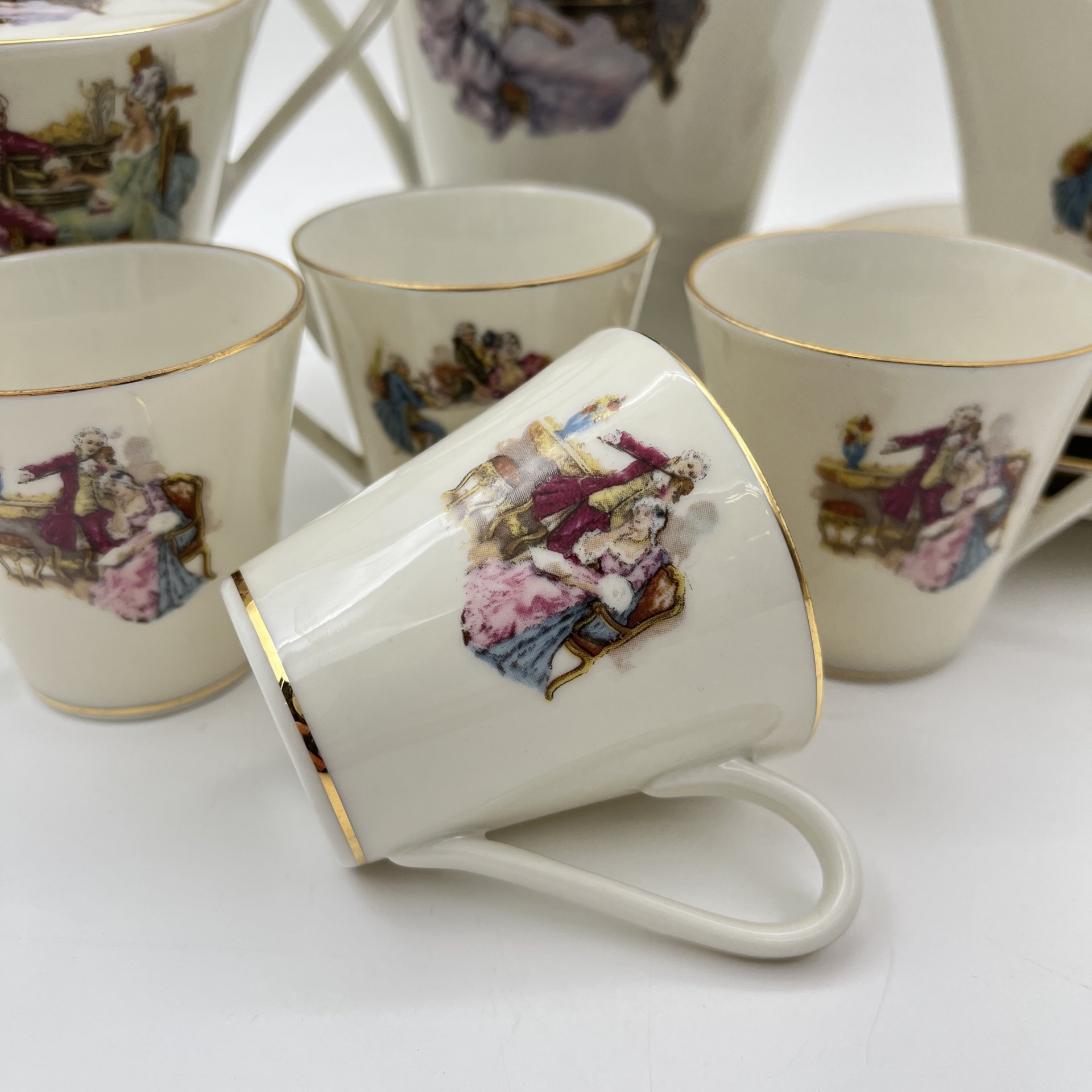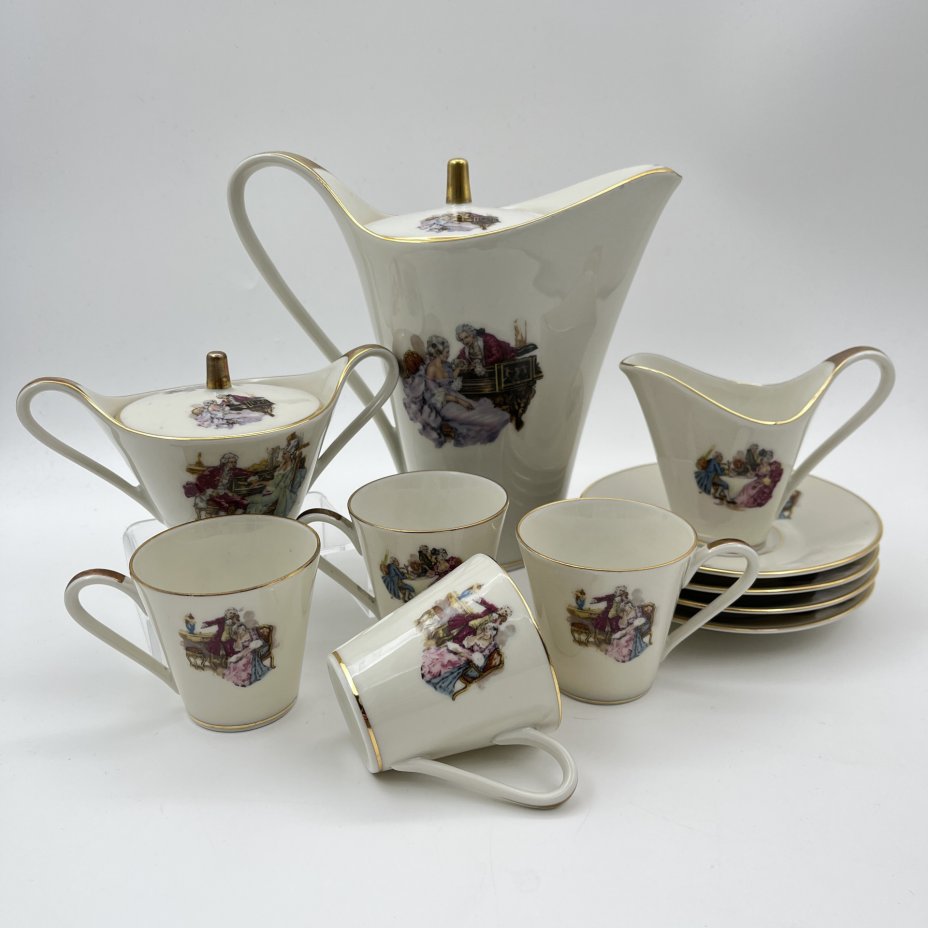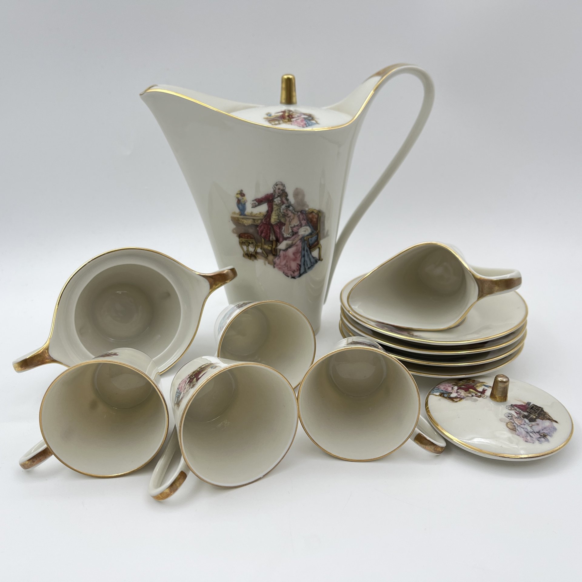 Сервиз кофейный на 5 персон (12 предметов), декорированный разводами фиолетового оттенка, фарфор, золочение, Wloclawek (Влоцлавская фаянсовая фабрика), Польша, 1973-1991 гг.
