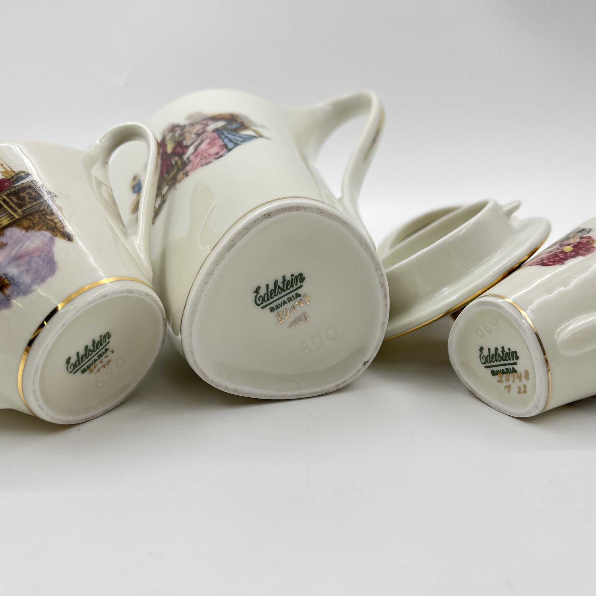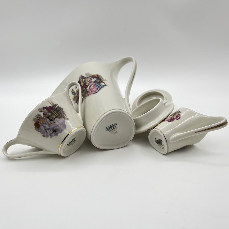 Сервииз кофейный на 6 персон (15 предметов), украшенный флоральным орнаментом, фарфор, деколь, Aelteste Volkstedt, ГДР, 1960-1980 гг.