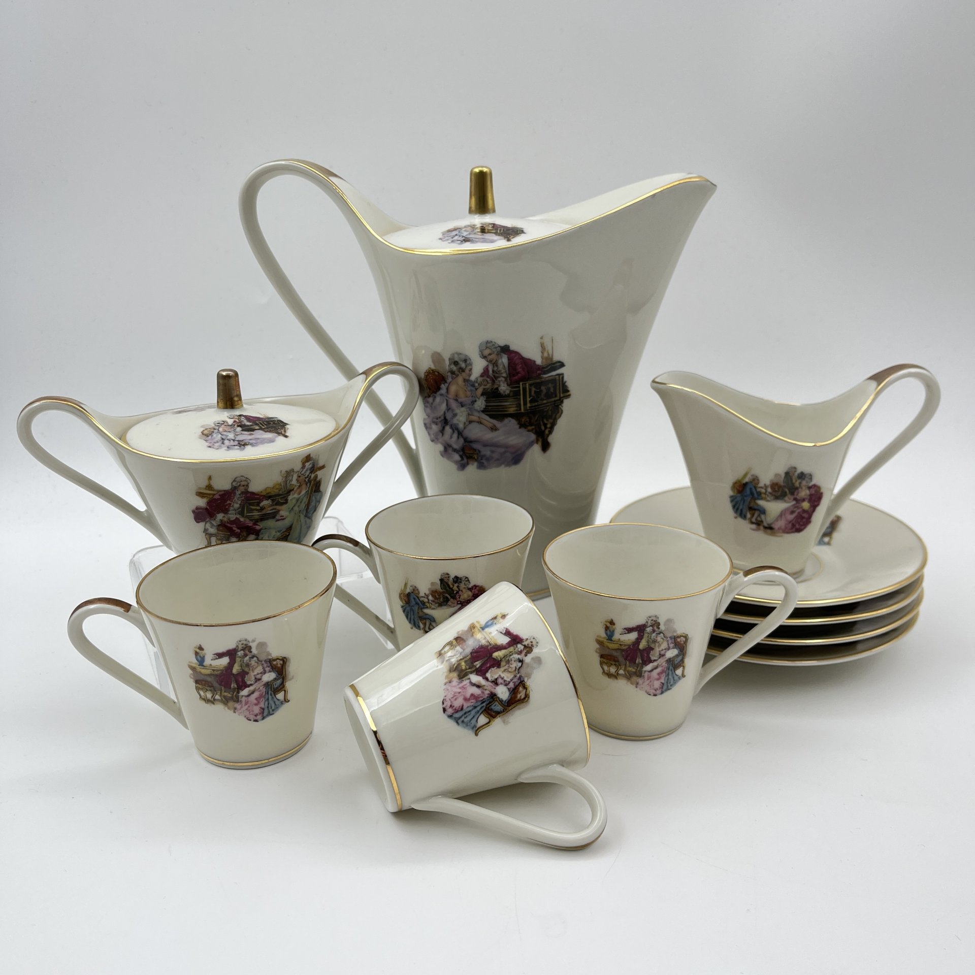 Сервиз кофейный с цветочным декором на 4 персоны (15 предметов), фарфор, деколь, золочение, Cmielow, Польша, 1950-1970 гг.