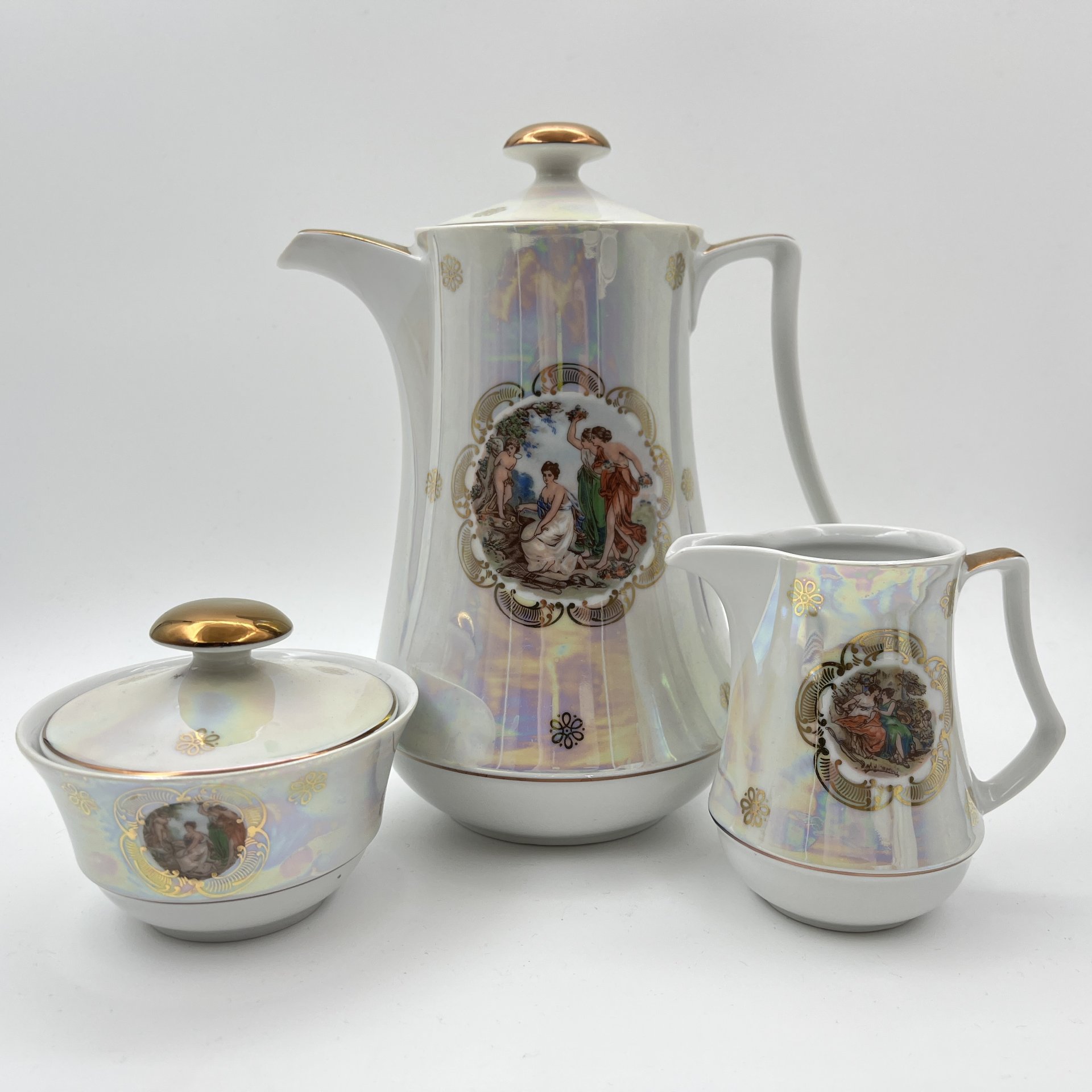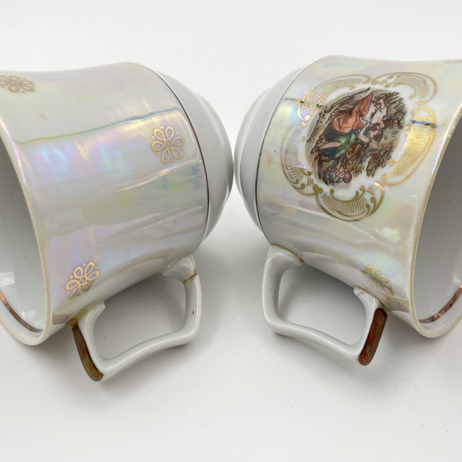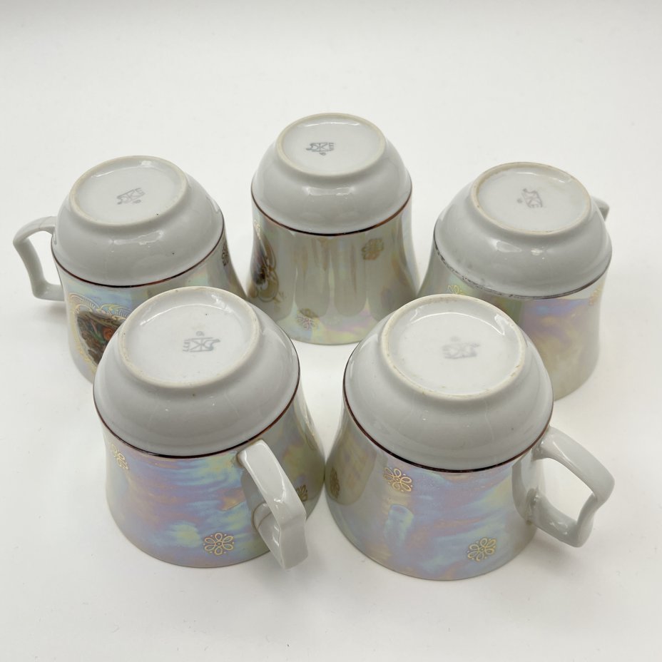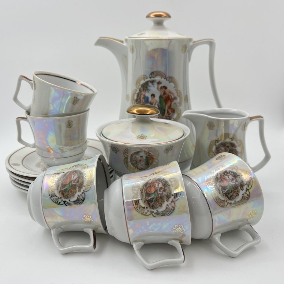 Сервиз кофейный "Мадонна" с разводами, на 4 персоны (11 предметов), фарфор, деколь, люстр, обводка, Европа, 1970-1990 гг.