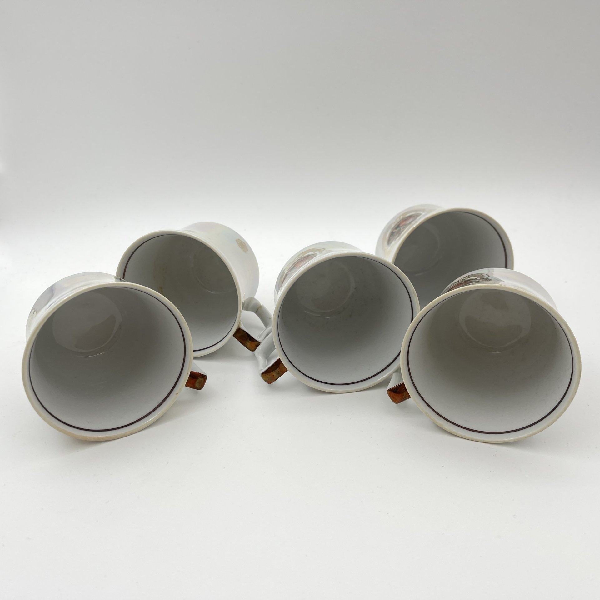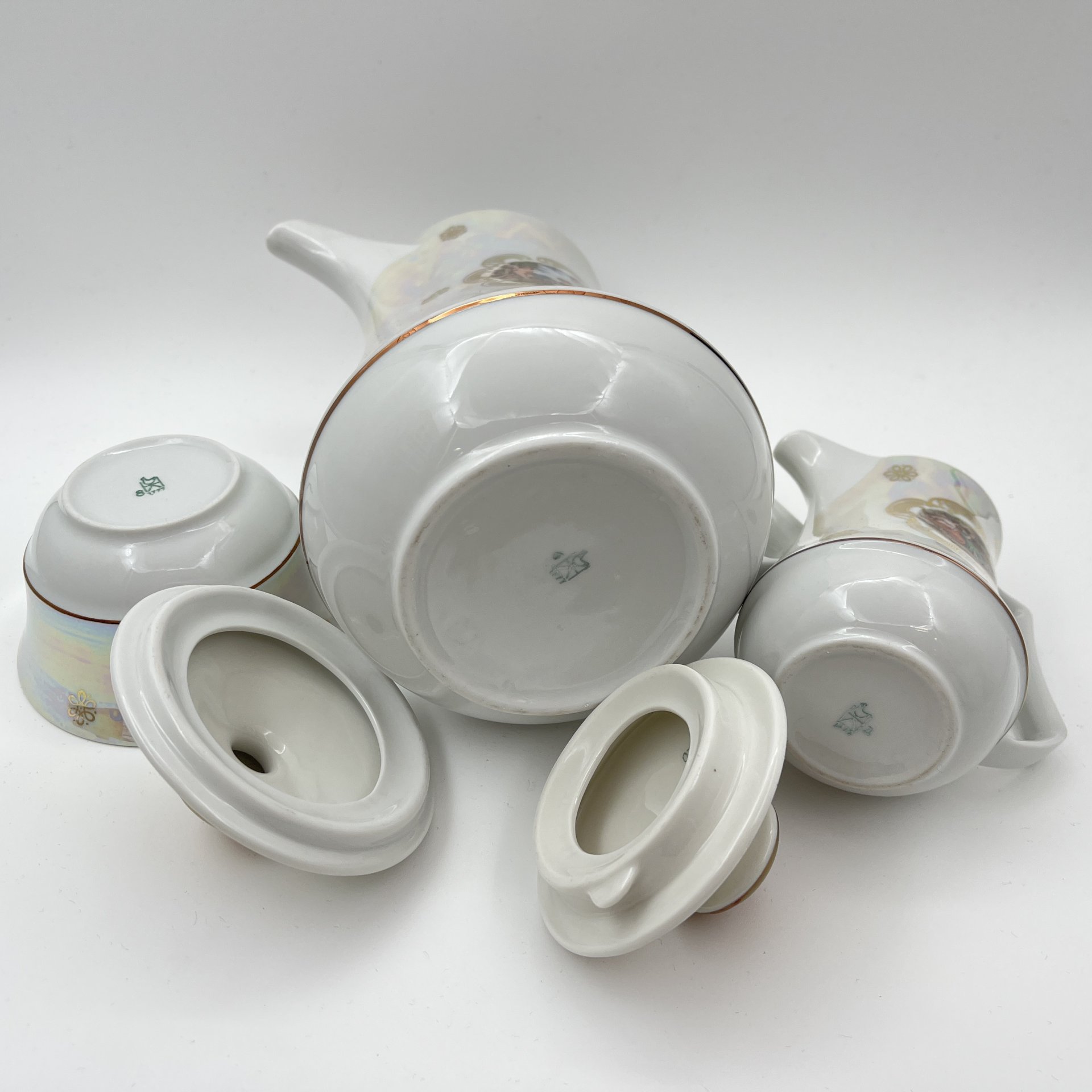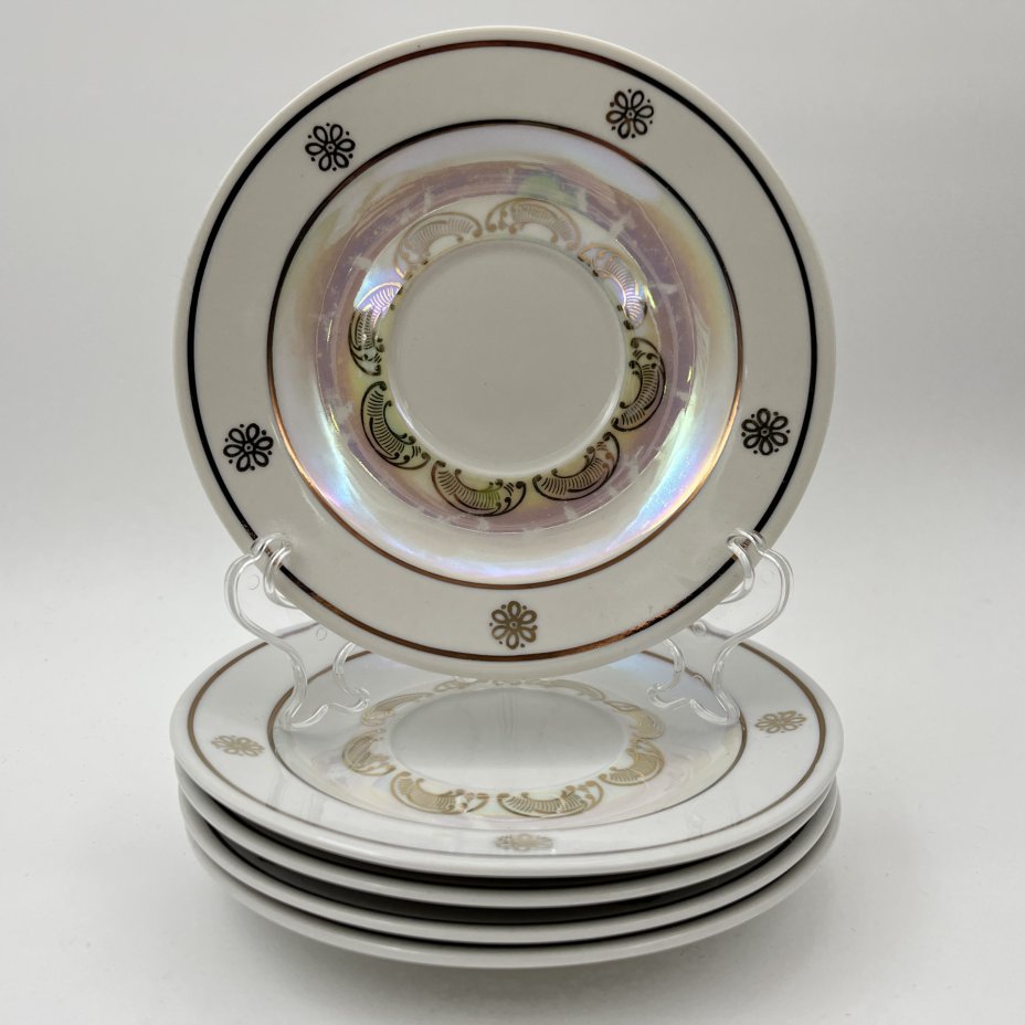Сервиз кофейный "Мадонна" с разводами, на 4 персоны (11 предметов), фарфор, деколь, люстр, обводка, Европа, 1970-1990 гг.