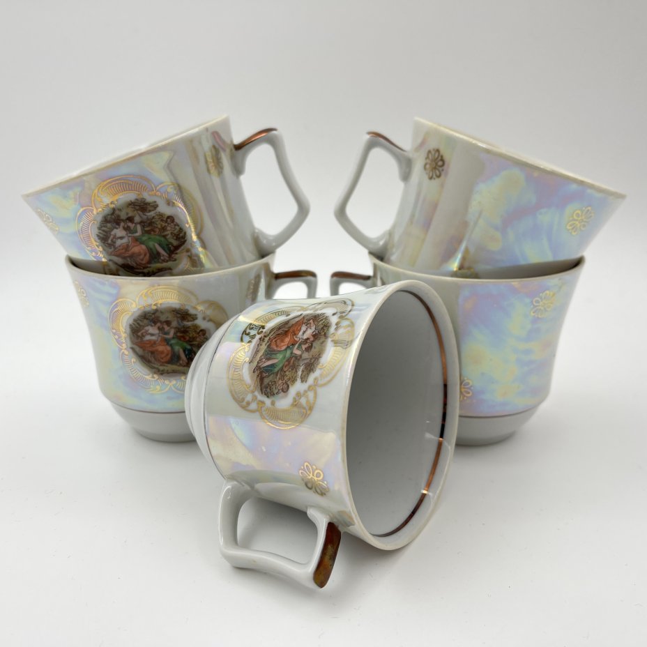 Купить Сервиз кофейный "Мадонна" с разводами, на 4 персоны (11 предметов), фарфор, деколь, люстр, обводка, Европа, 1970-1990 гг.