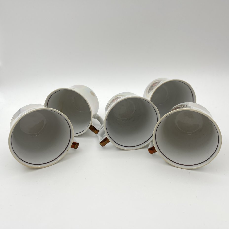 Сервиз кофейный с цветочным декором на одну персону (5 предметов), фарфор, деколь, золочение, Восточная Европа, 1960-1980 гг.