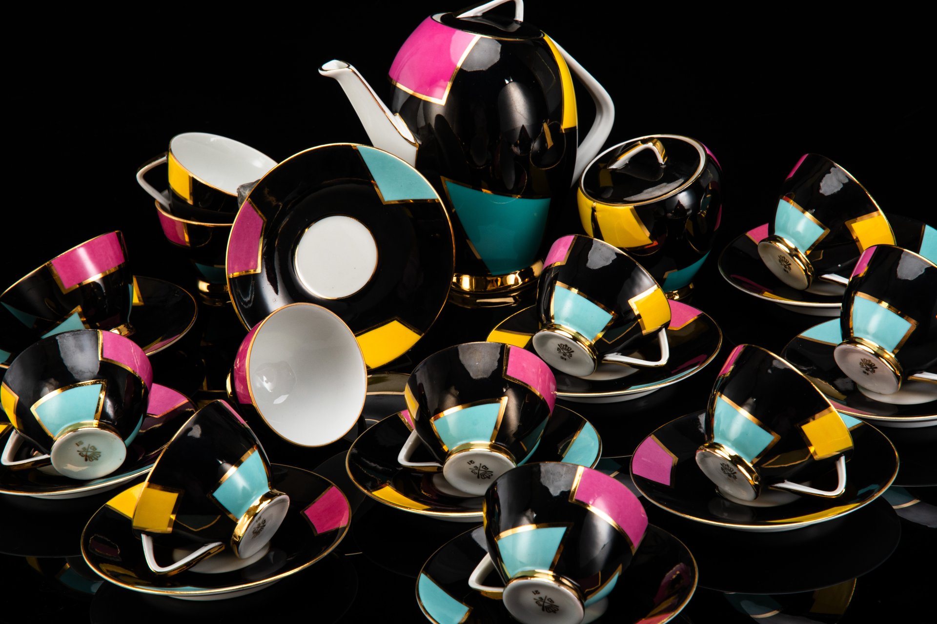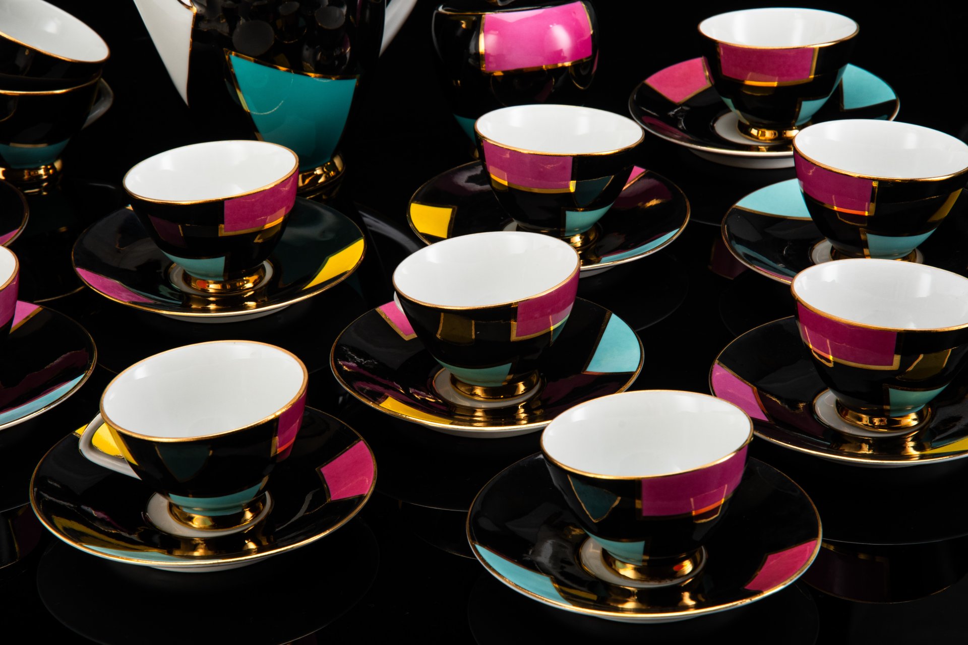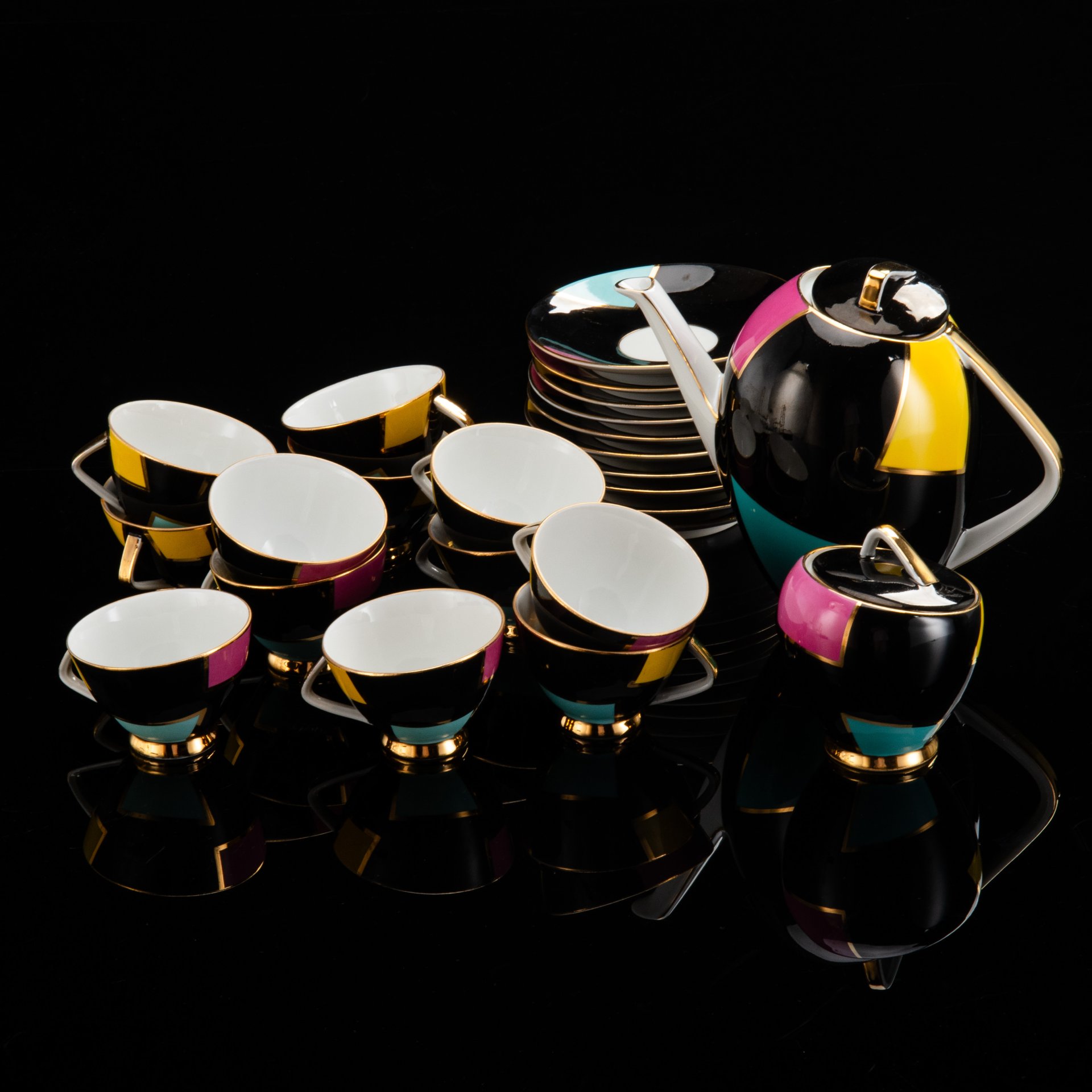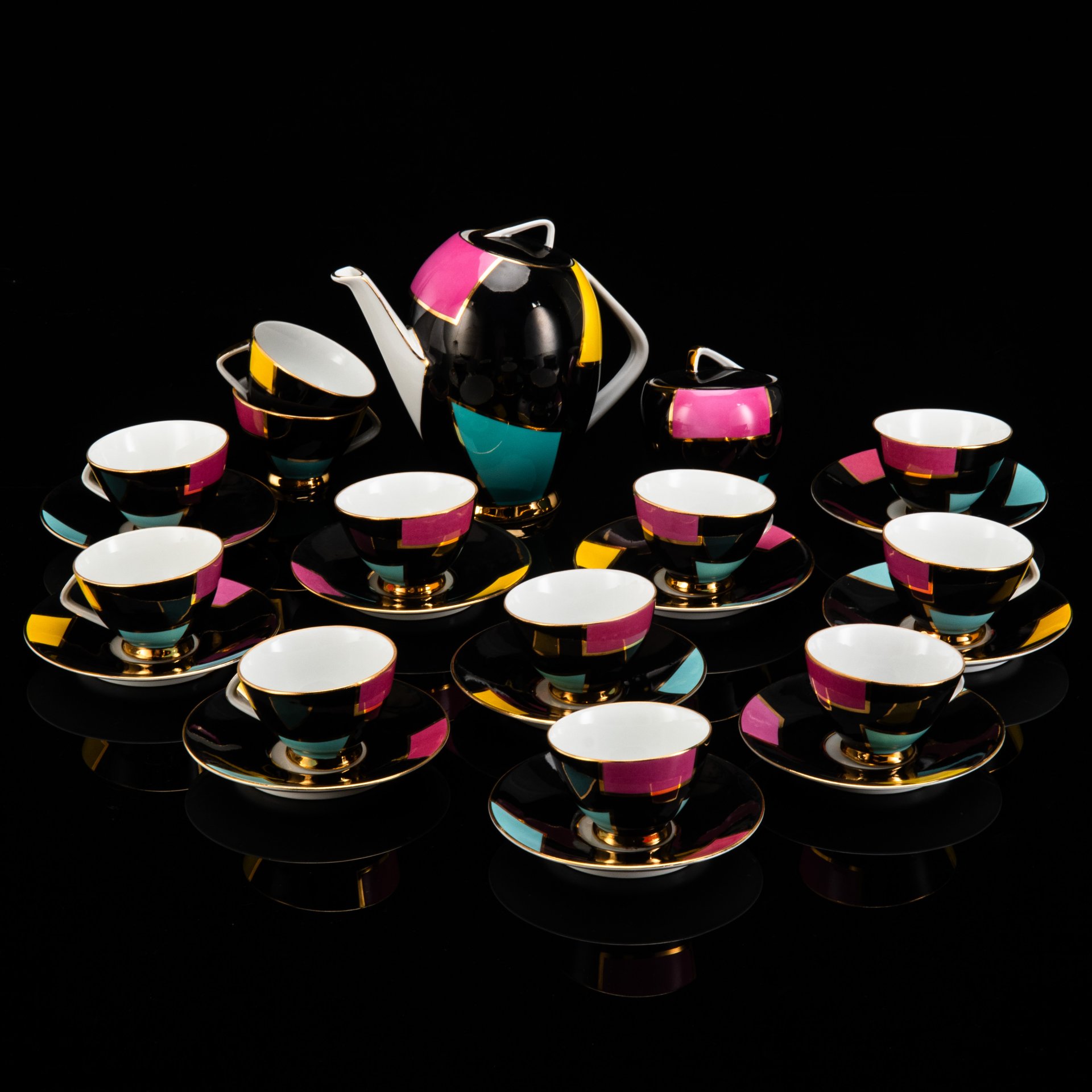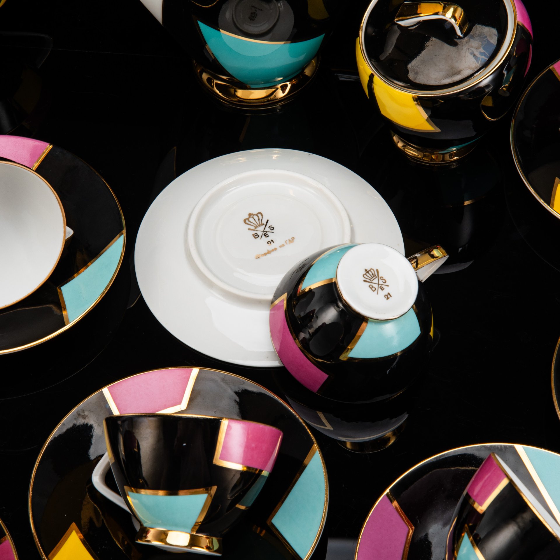 Сервиз кофейный "Фриз" на 6 персон (21 предмет), фарфор, деколь, золочение, Ленинградский фарфоровый завод (ЛФЗ), СССР, 1970-1991 гг.
