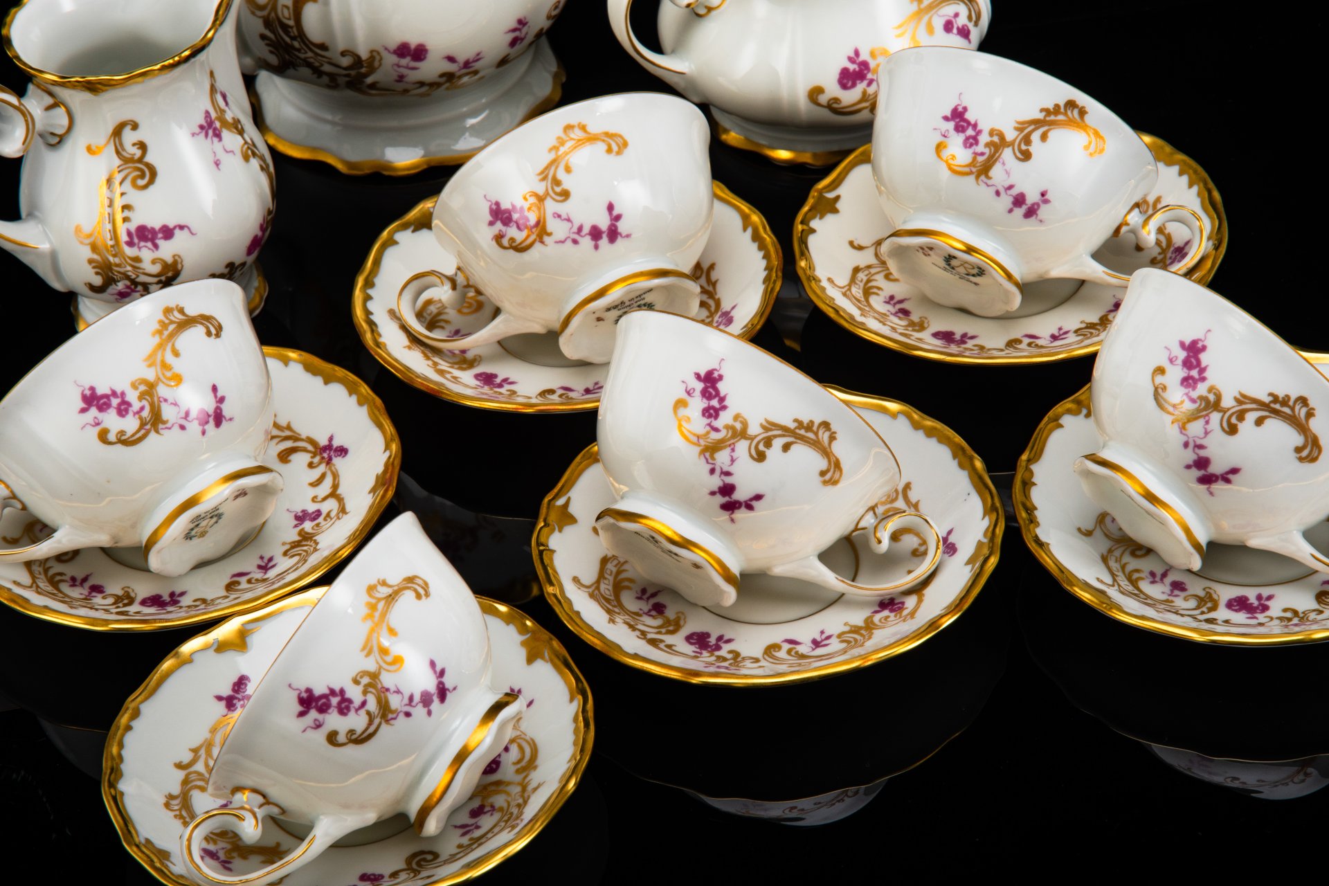 Сервиз кофейный на 6 персон (14 предметов), украшенный цветами и птицами, фарфор, деколь, золочение, Дулевский фарфоровый завод (Дулёво), Российская Федерация, 2000 г.