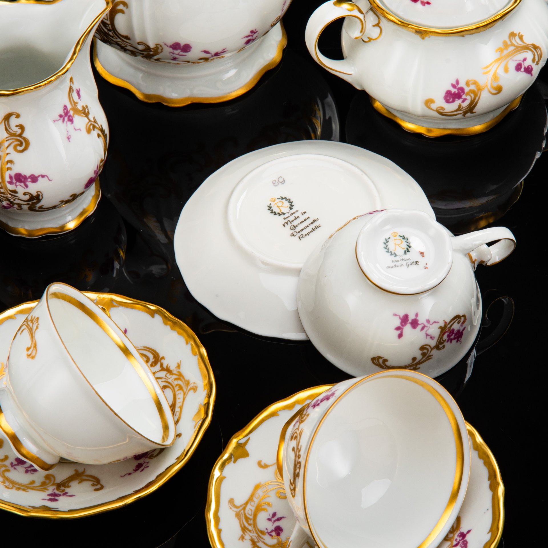 Сервиз кофейный с геометрическим декором, на 4 персонs (10 предметов), фарфор, деколь, золочение, Freiberg Porzellan, ГДР, 1957-1972 гг.