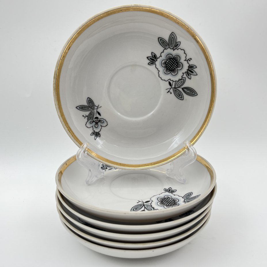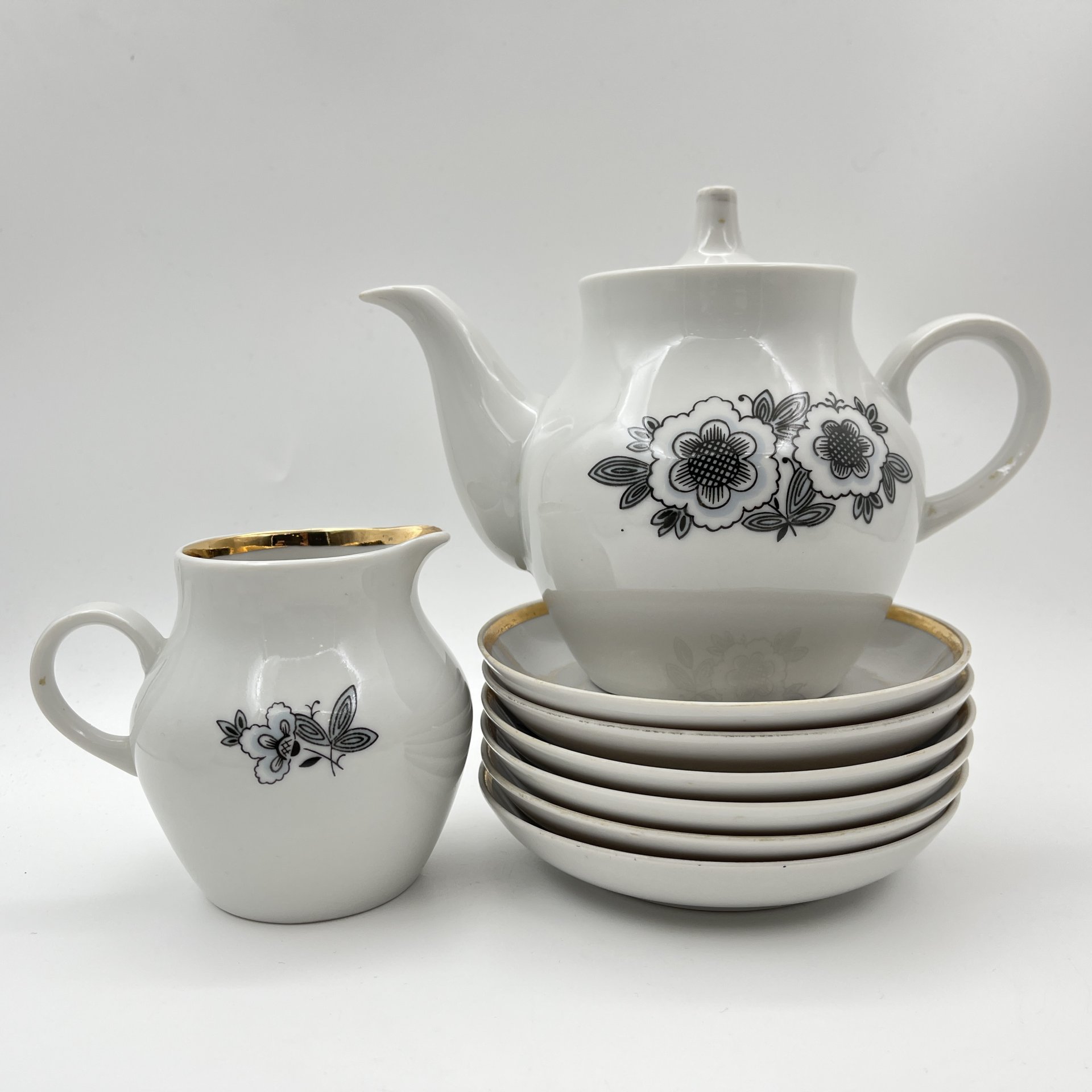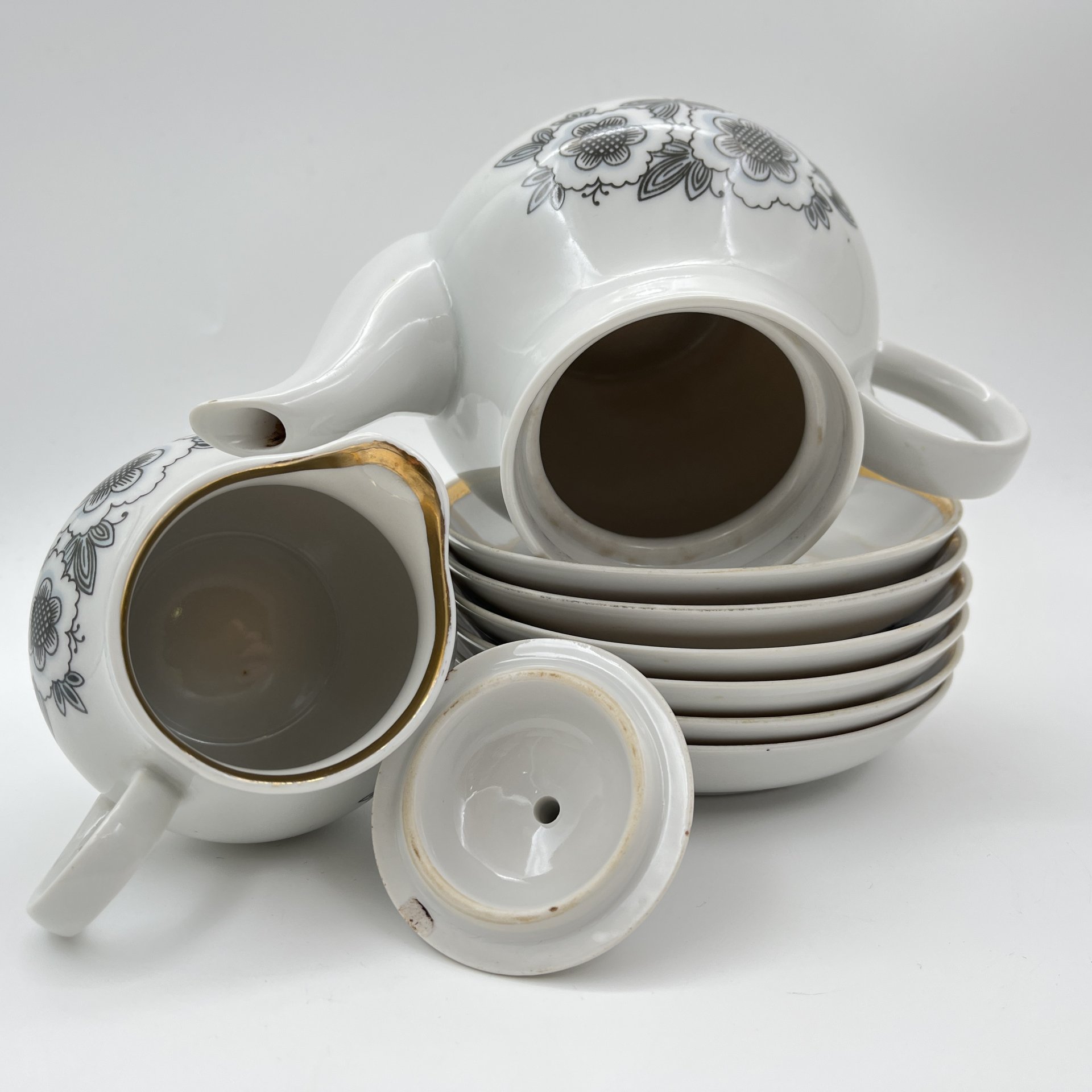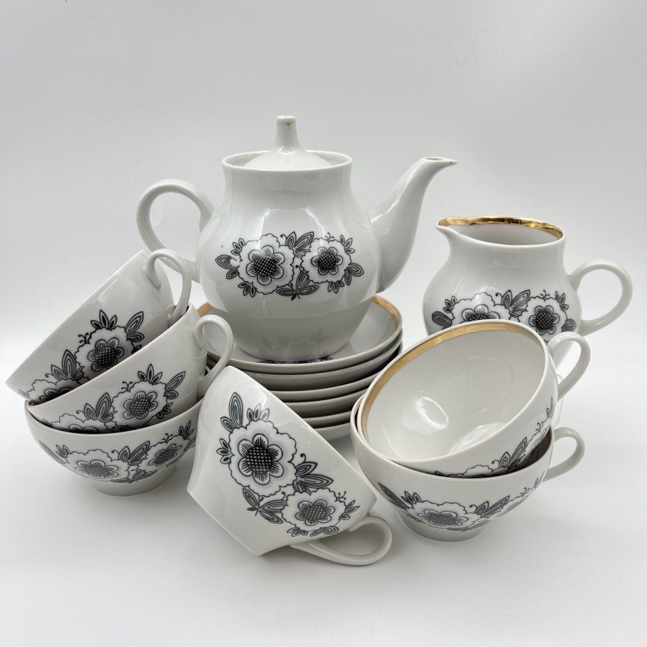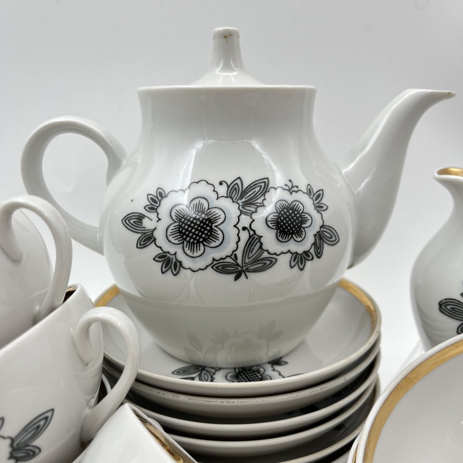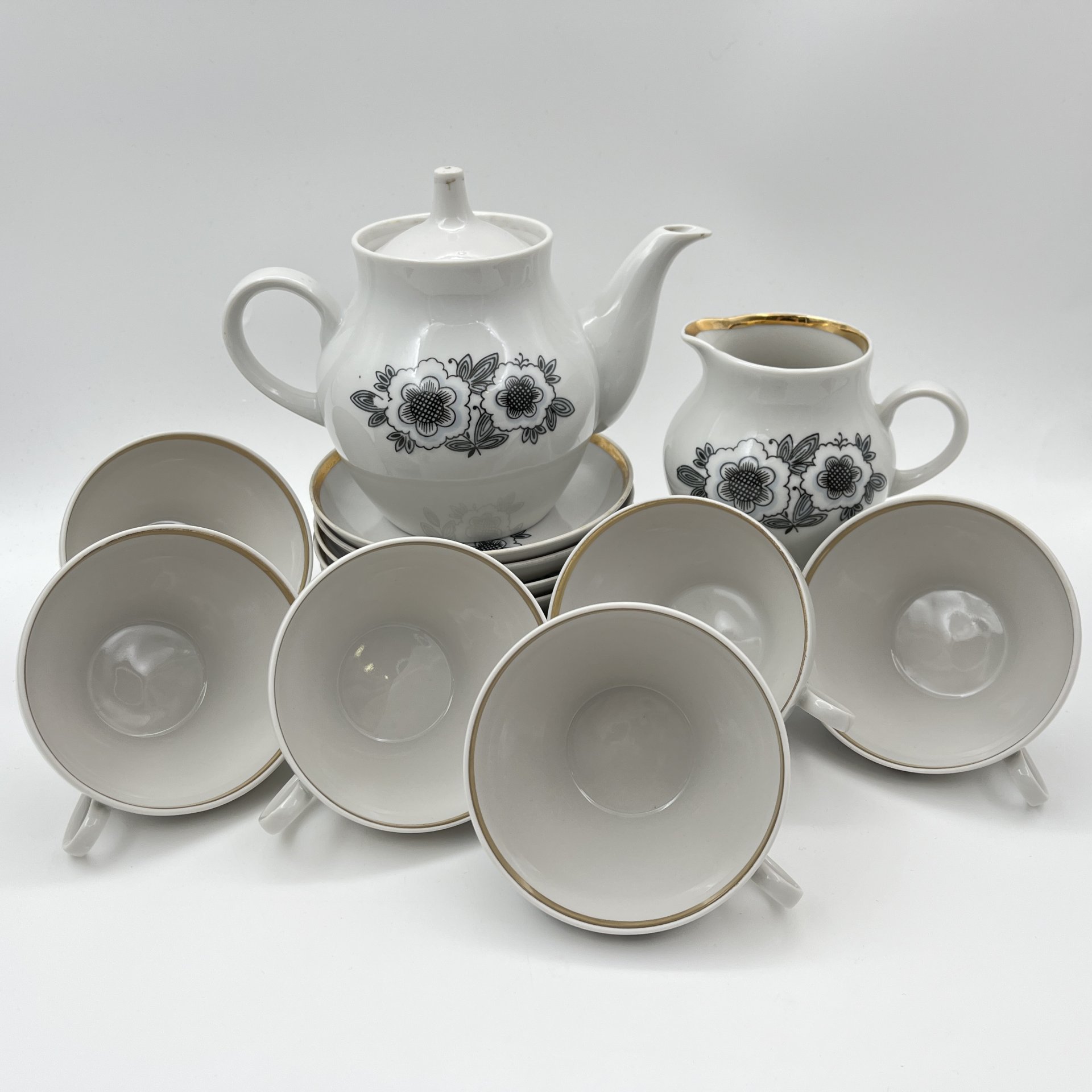 Сервиз кофейный с лаконичным декором, на 6 персон (15 предметов), фарфор, золочение, Volkstedt Beyer & Bock, Германия, 1948-1968 гг.