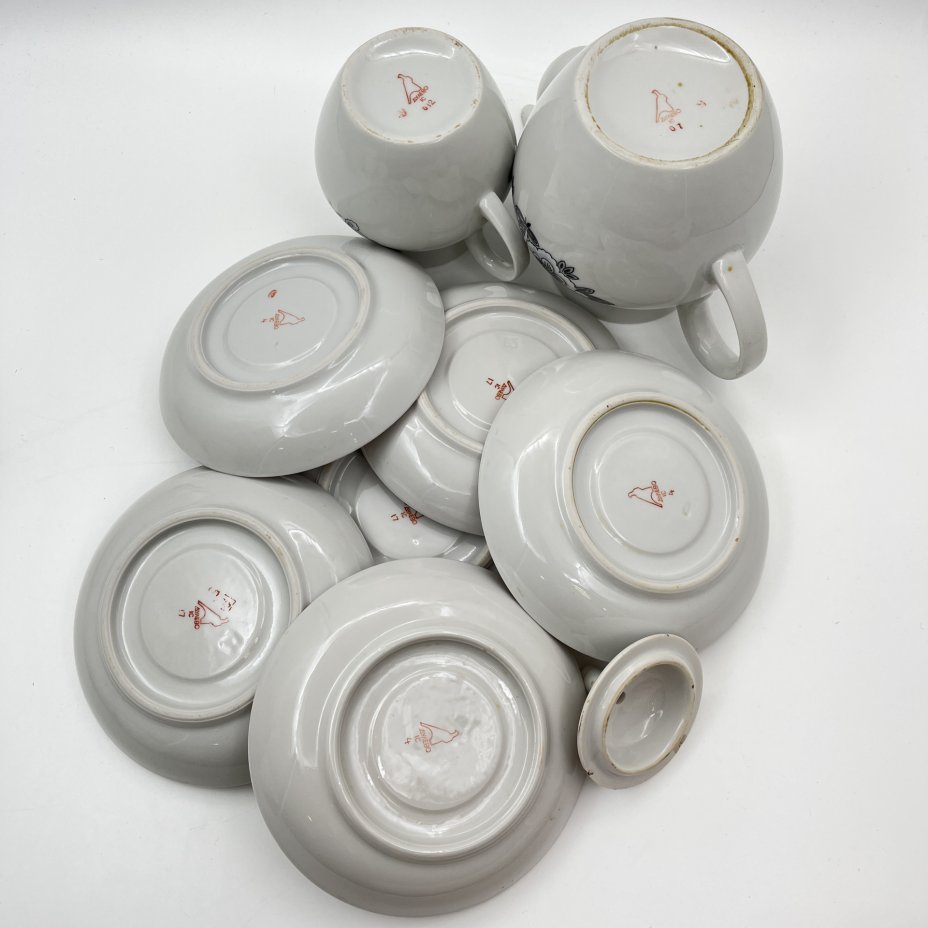 Сервиз кофейный на 6 персон (15 предметов), украшенный цветочнм декором, фарфор, крытье кобальтом, золочение, Полонский фарфоровый завод, СССР, 1980-1991 гг.