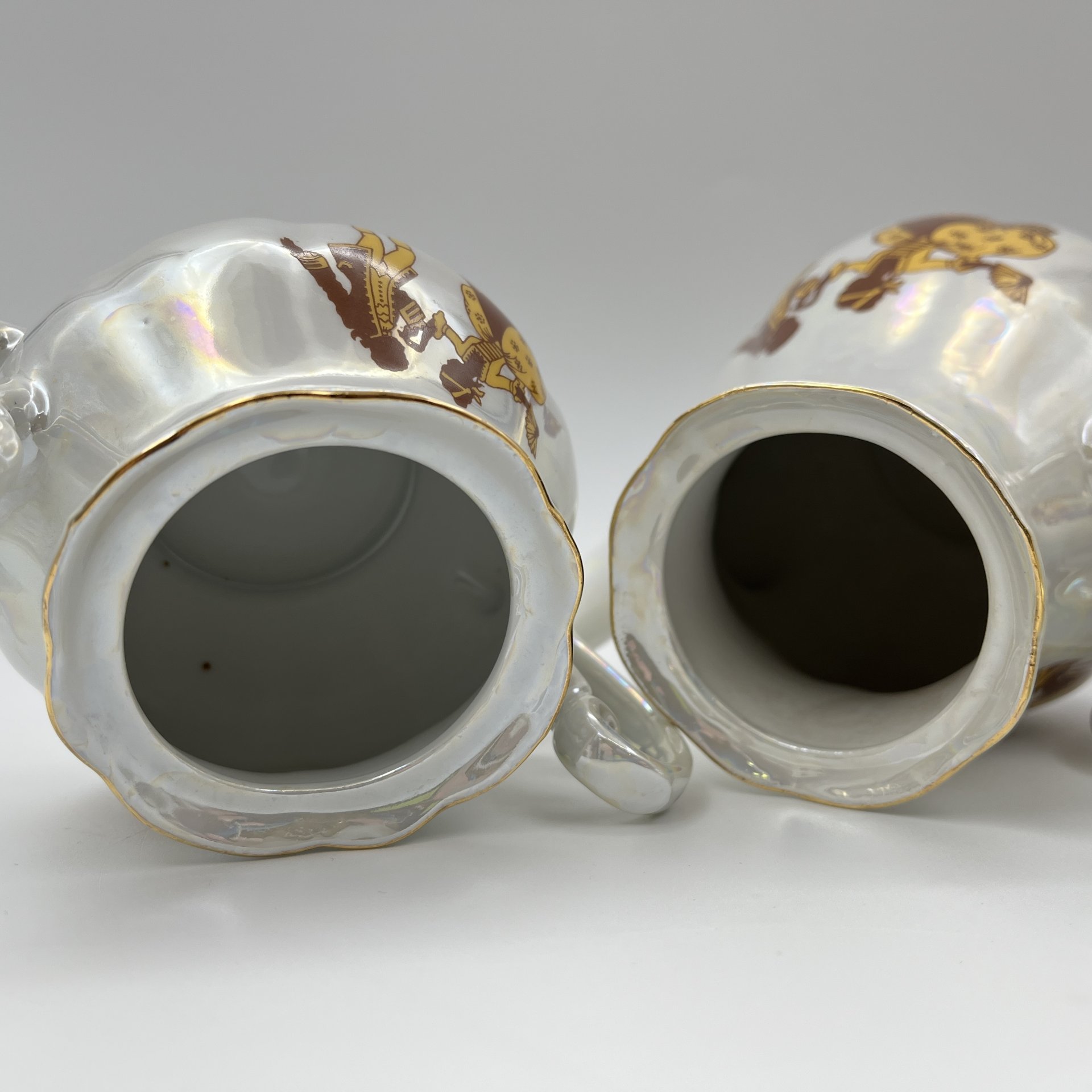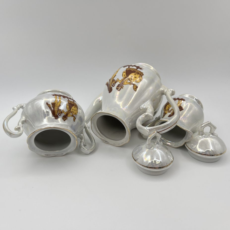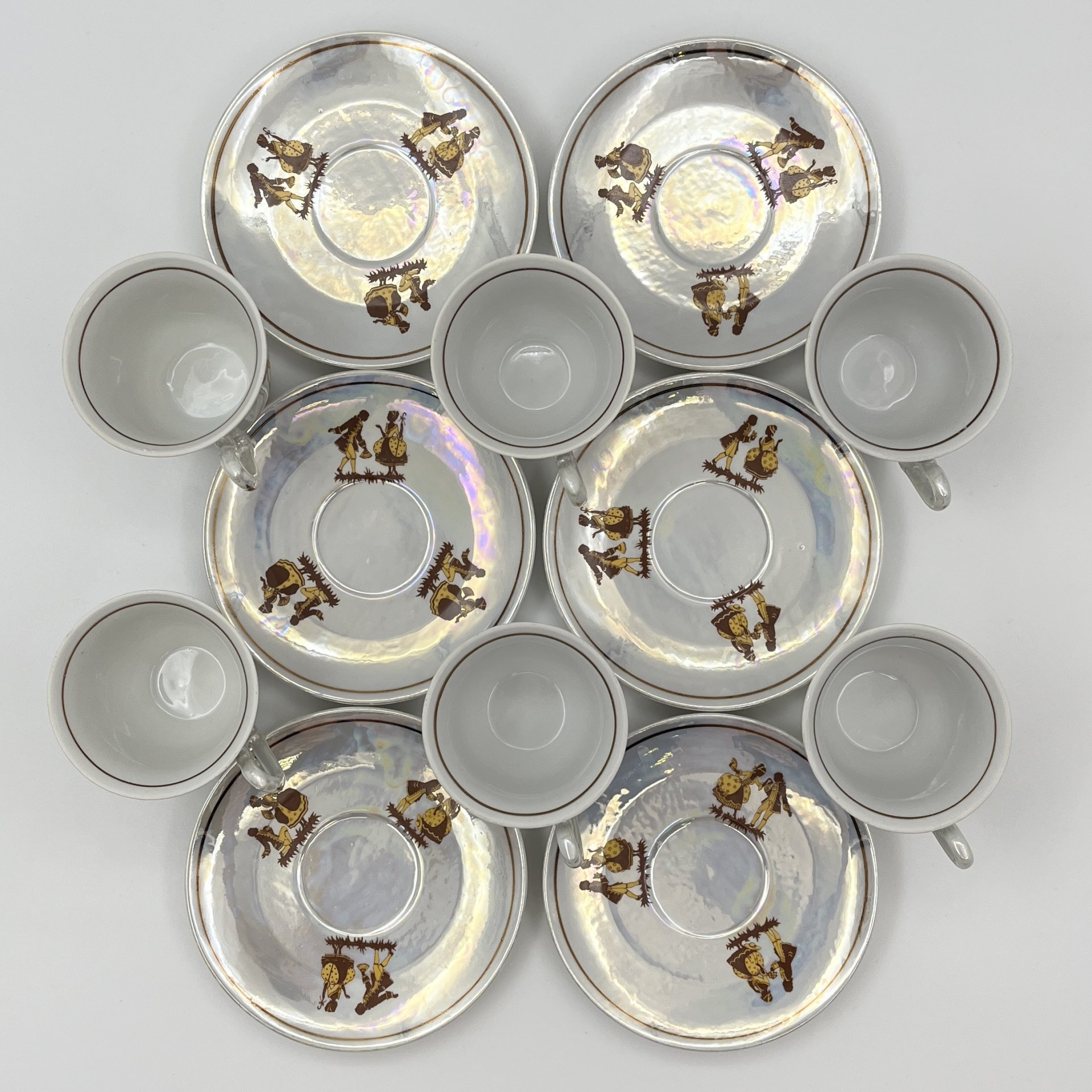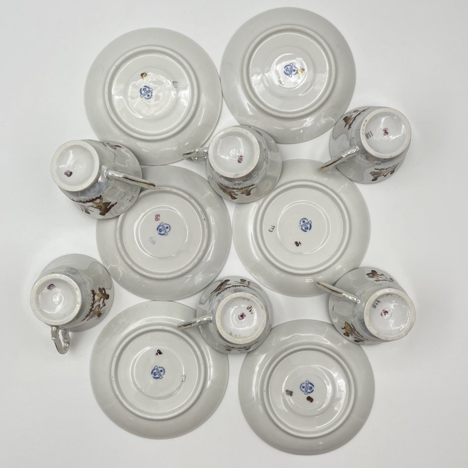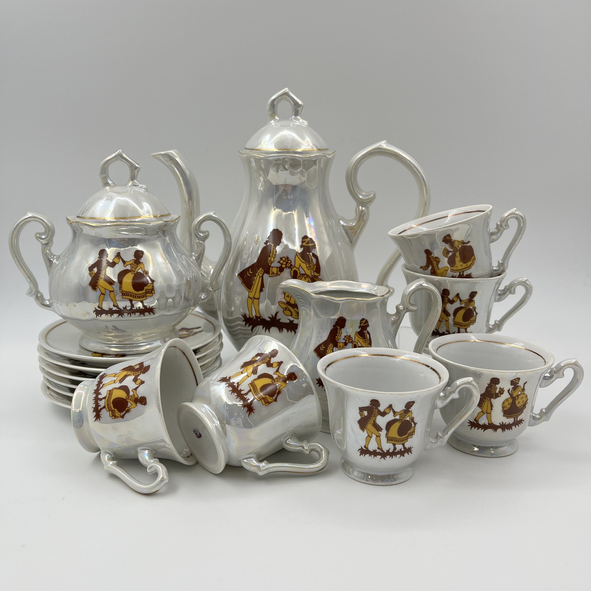 Сервиз кофейный "Галантная сцена" на 6 персон (15 предметов), фарфор, деколь, люстр, золочение, Западная Европа, 1970-1990 гг.