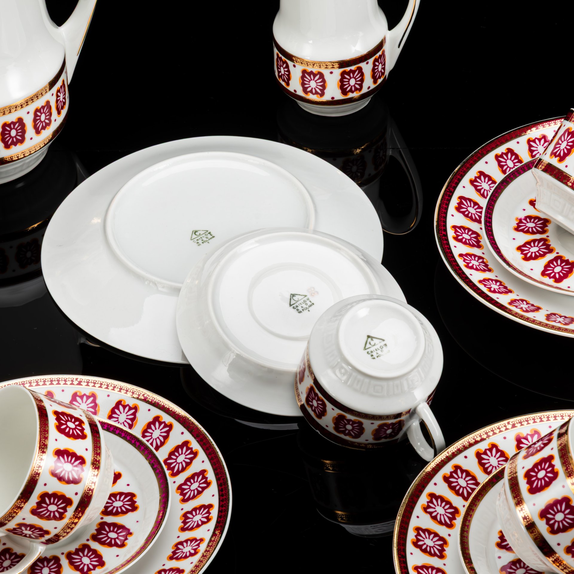Сервиз кофейный на 5 персон (12 предметов), декорированный разводами фиолетового оттенка, фарфор, золочение, Wloclawek (Влоцлавская фаянсовая фабрика), Польша, 1973-1991 гг.