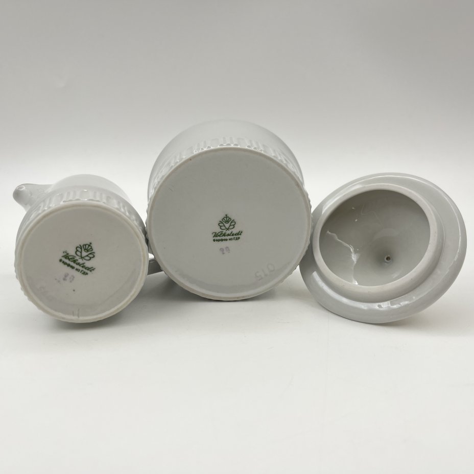 Набор кофейный "Мадонна" (кофейник, сахарница, молочник), фарфор, люстр, деколь, золочение, Oscar Schlegelmilch, ГДР, 1953-1972 гг.