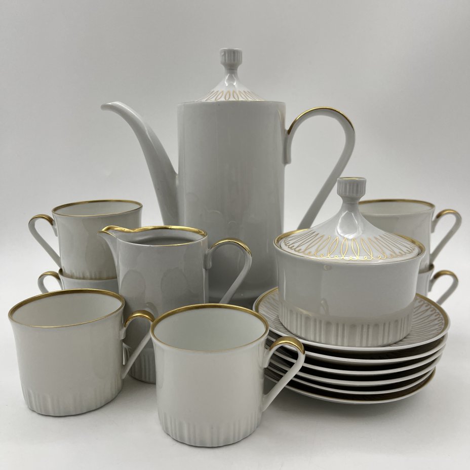 Сервиз кофейный с цветочным декором на 6 персон (15 предметов), фарфор, деколь, золочение, Colditz (Кольдиц), ГДР, 1960-1990 гг.