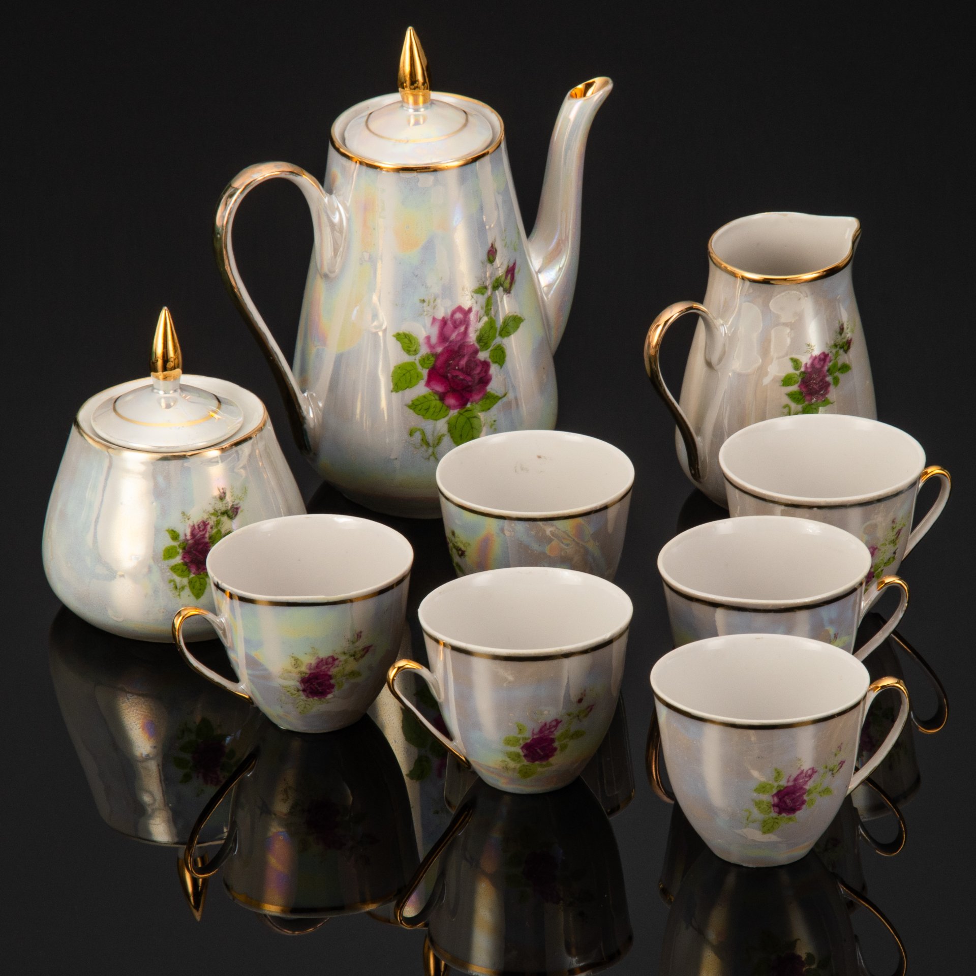 Сервиз кофейный с цветочным декором на одну персону (5 предметов), фарфор, деколь, золочение, Восточная Европа, 1960-1980 гг.