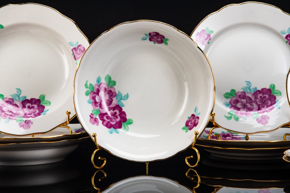 Сервиз обеденный на 6 персон с растительным декором (19 шт.), фарфор, деколь, золочение, Weimar Porzellan (Веймарский фарфор), Германия, 1970-1990 гг.