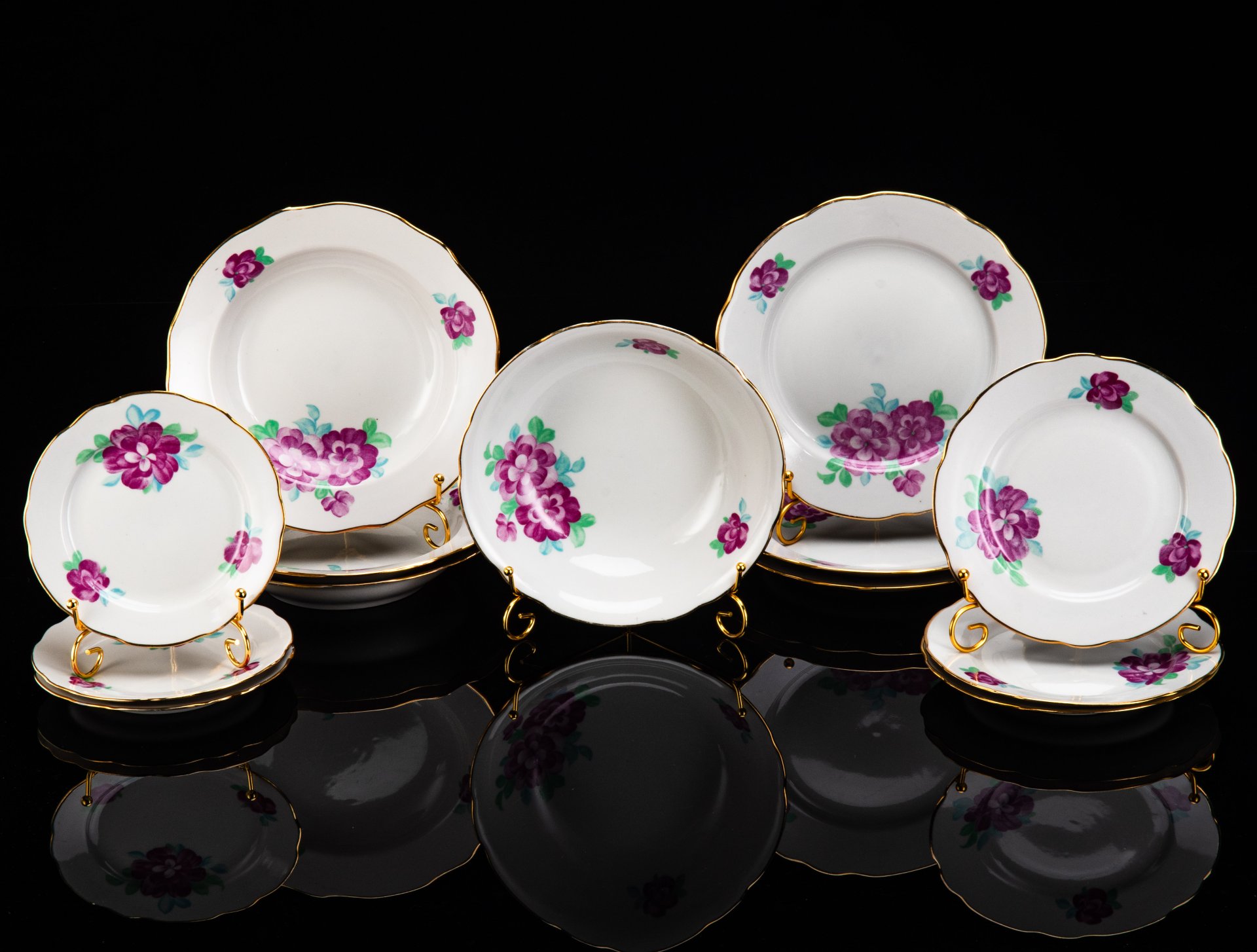 Набор обеденный на 10 персон с цветочным декором (15 предметов), фарфор, деколь, Weimar Porzellan (Веймарский фарфор), ГДР, 1949-1990 гг.