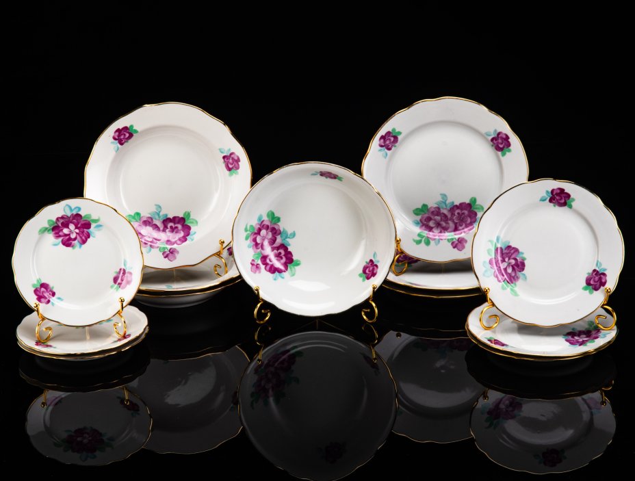 Купить Набор обеденный на 10 персон с цветочным декором (15 предметов), фарфор, деколь, Weimar Porzellan (Веймарский фарфор), ГДР, 1949-1990 гг.