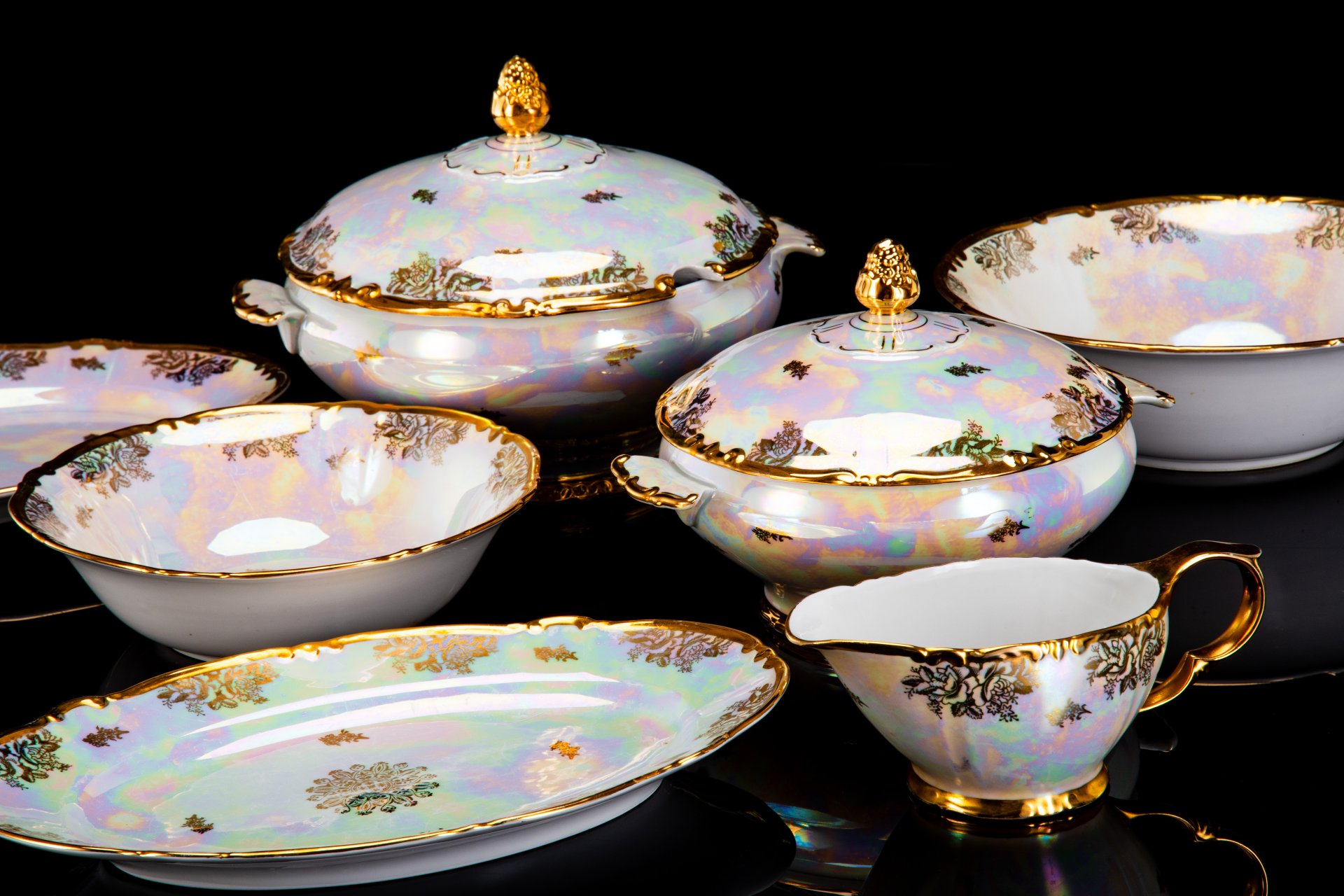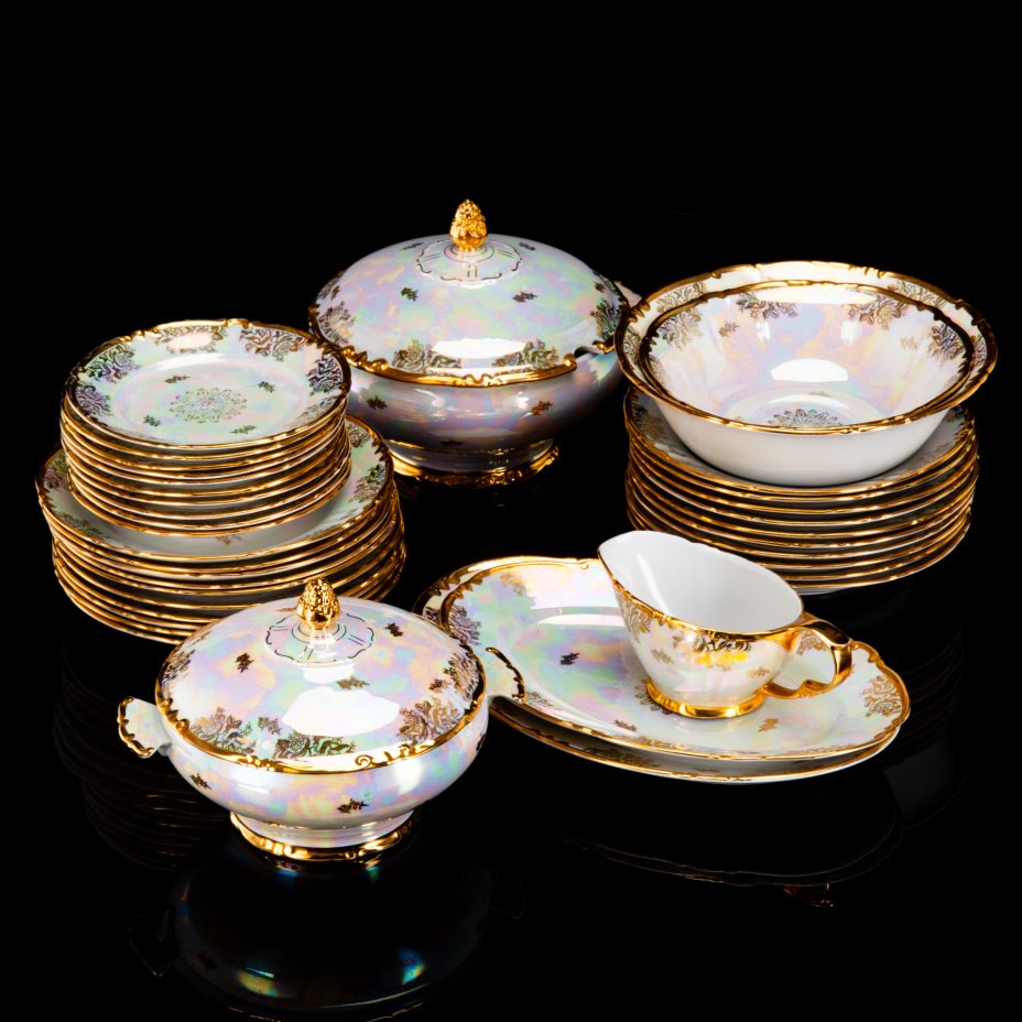 Сервиз обеденный на 6 персон с растительным декором (19 шт.), фарфор, деколь, золочение, Weimar Porzellan (Веймарский фарфор), Германия, 1970-1990 гг.