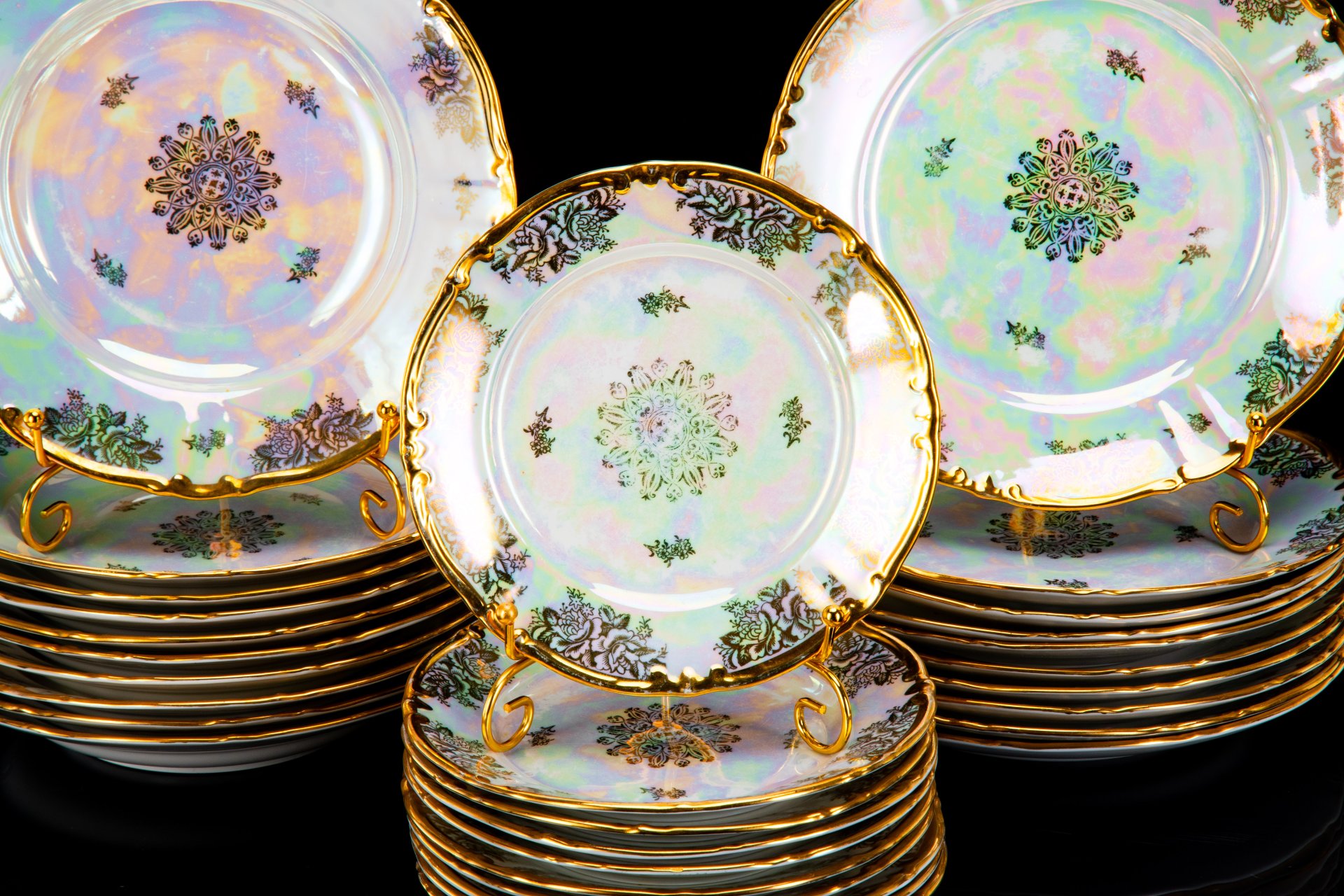 Набор обеденный с зеленой каймой (17 предметов), фарфор, крытьё, золочение, Российская Империя, 1900-1917 гг.