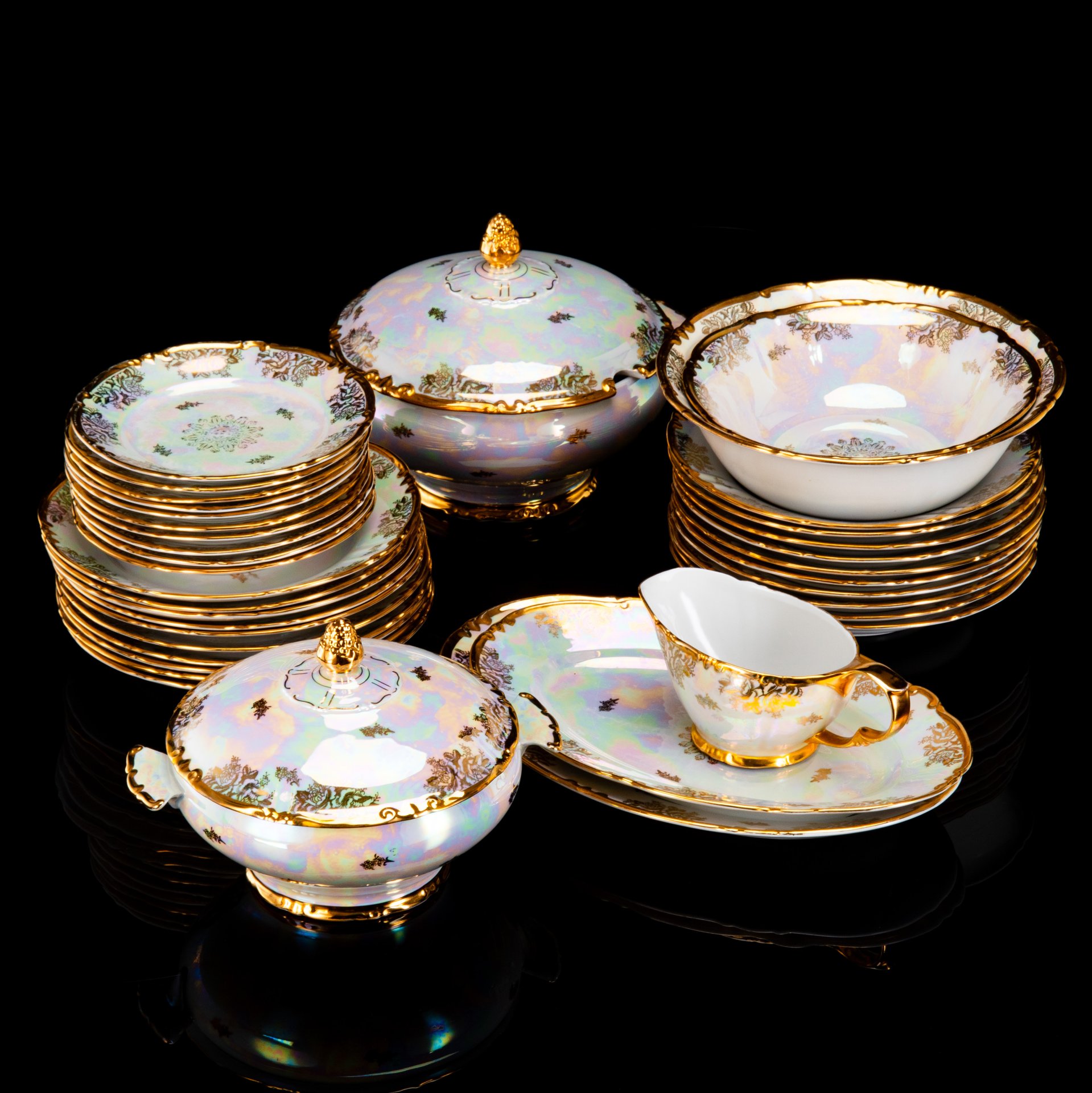 Набор обеденный на 4 персоны украшенный ленточным орнаментом (21 предмет), фарфор, золочение, Johann Seltmann Vohenstrauss, Bavaria, Германия, 1949-1955 гг.