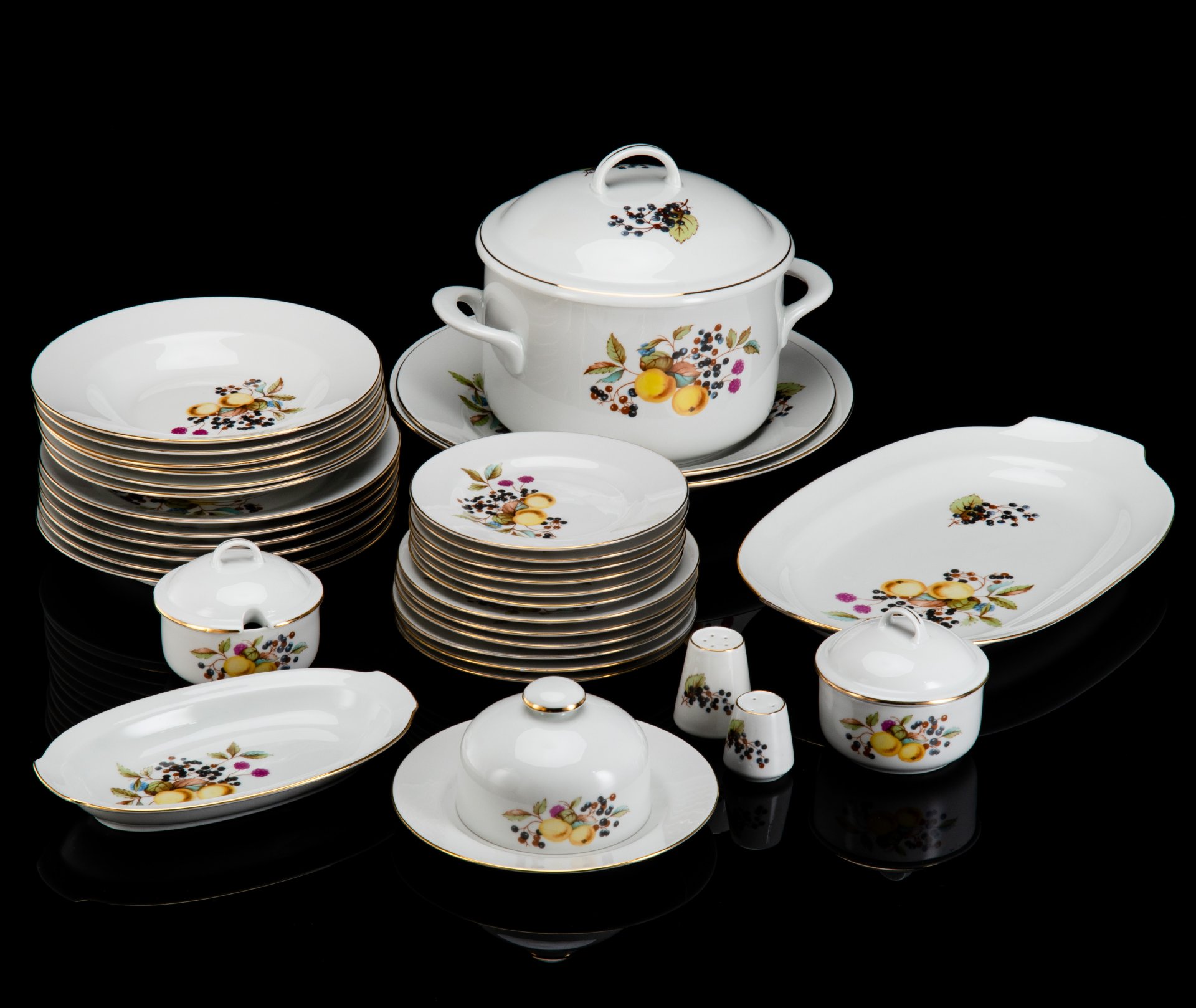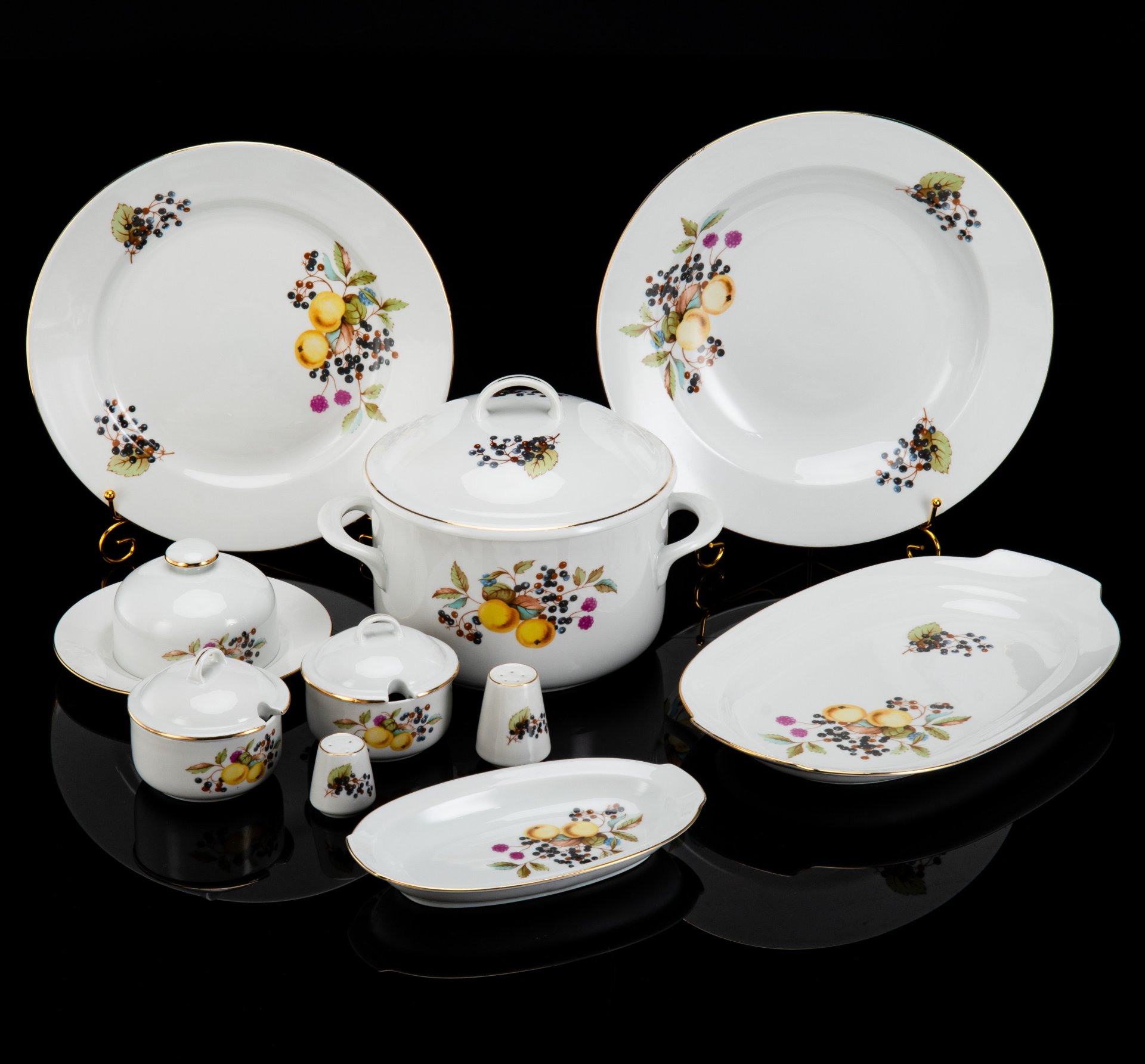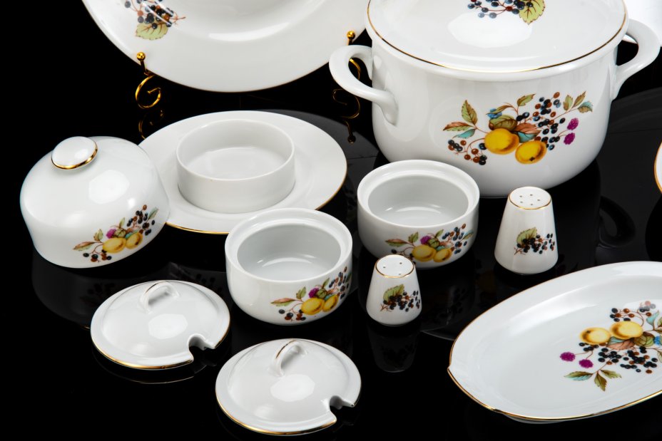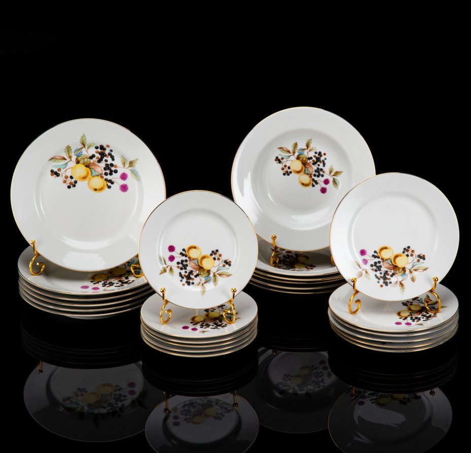 Сервиз обеденный на 6 персон с растительным декором (19 шт.), фарфор, деколь, золочение, Weimar Porzellan (Веймарский фарфор), Германия, 1970-1990 гг.