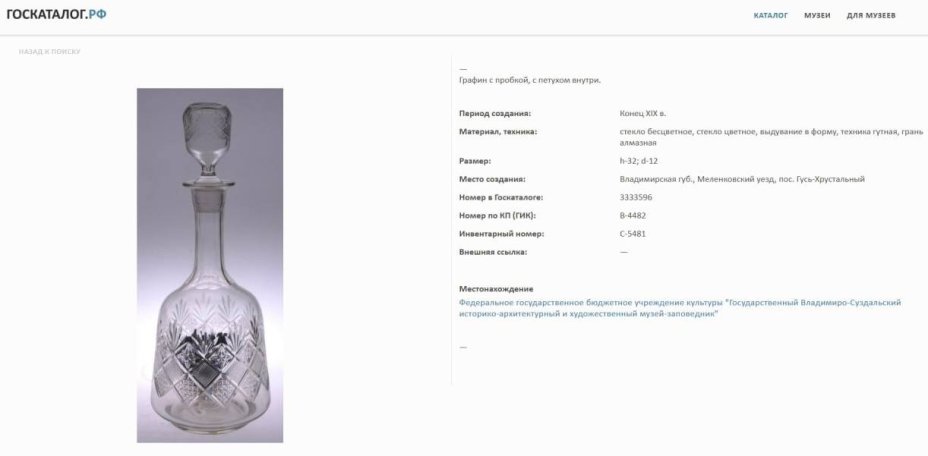 Графин (штоф) "Петух", стекло, резьба, гутная техника, Российская империя, 1900-1915 гг.