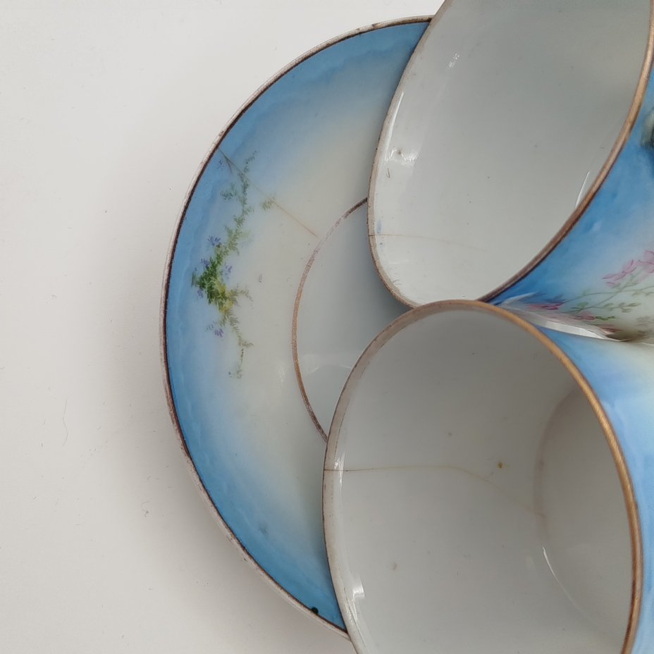 Набор из 2 чайных пар с декором из полевых цветов, фарфор, крытье, деколь, золочение, Российская империя, 1880-1910 гг.