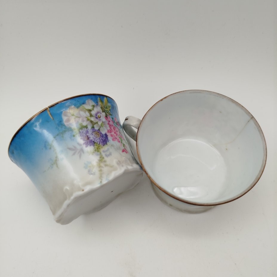 Кофейная пара с фигурной ручкой и цветочным декором, фарфор, крытье, роспись, золочение, Российская империя, 1880-1915 гг.