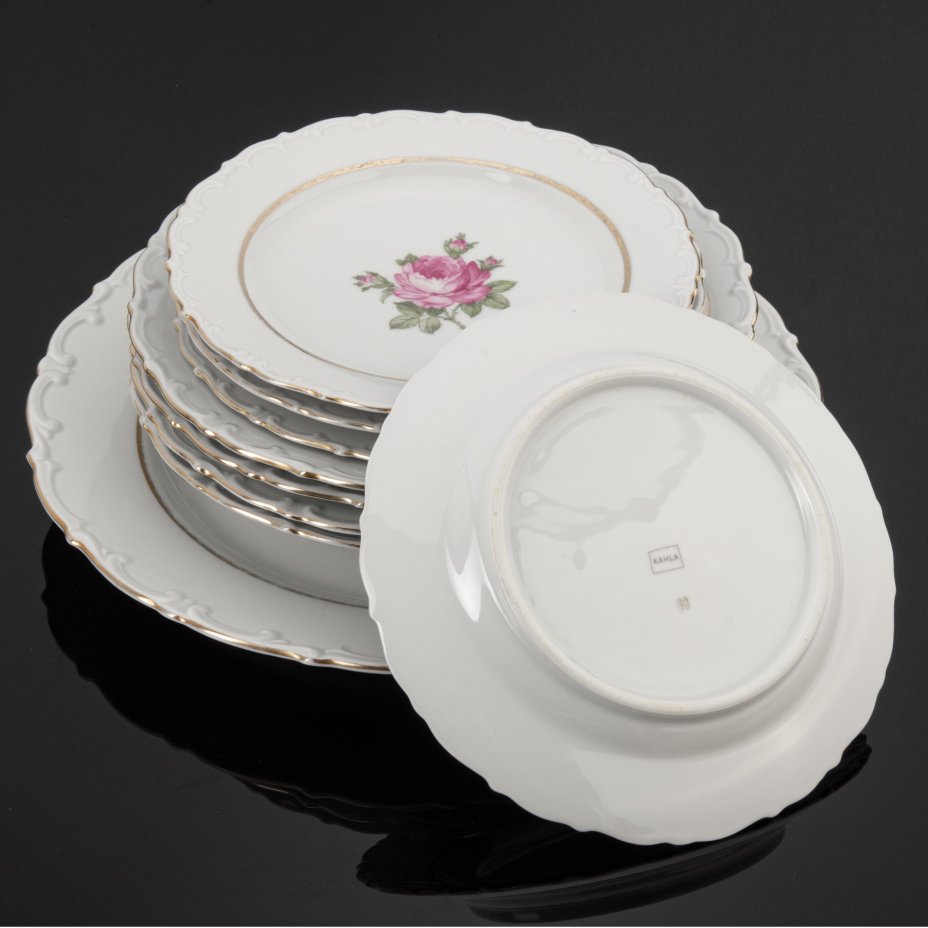 Набор обеденный на 4 персоны (10 предметов), фарфор, деколь, золочение, Kahla, ГДР, 1957-1980 гг.