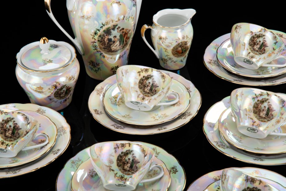 Сервиз чайно-кофейный "Мадонна" на 6 персон (22 предмета), фарфор, люстр, деколь, золочение, Kahla, ГДР, 1964-1967 гг.