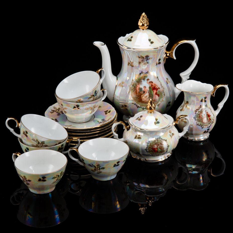 Сервиз чайный на 6 персон (15 предметов) "Мадонна", фарфор, деколь, люстр, золочение, Kahla, ГДР, 1960-1980 гг.