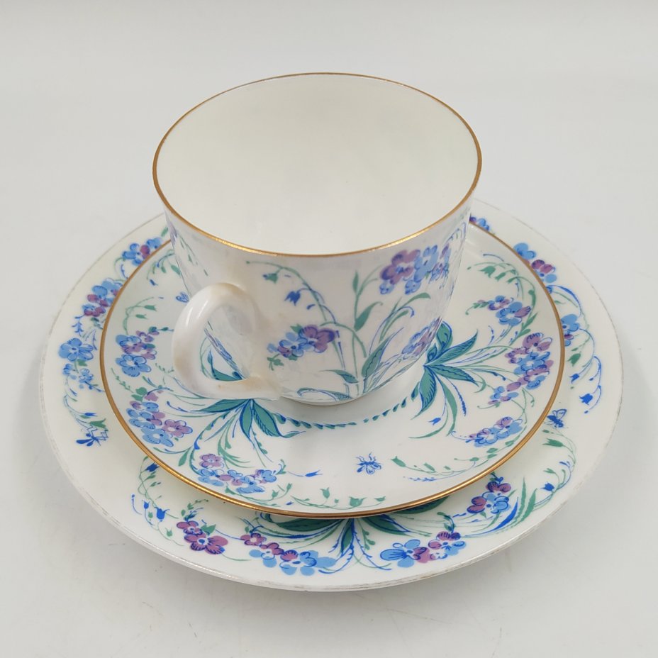 Трио кофейное "Незабудки", автор формы "Ландыш" Э.М. Криммер, автор рисунка Матвеева О.М., фарфор, деколь, золочение, Ленинградский фарфоровый завод (ЛФЗ), Российская Федерация, 1992-2001 гг.