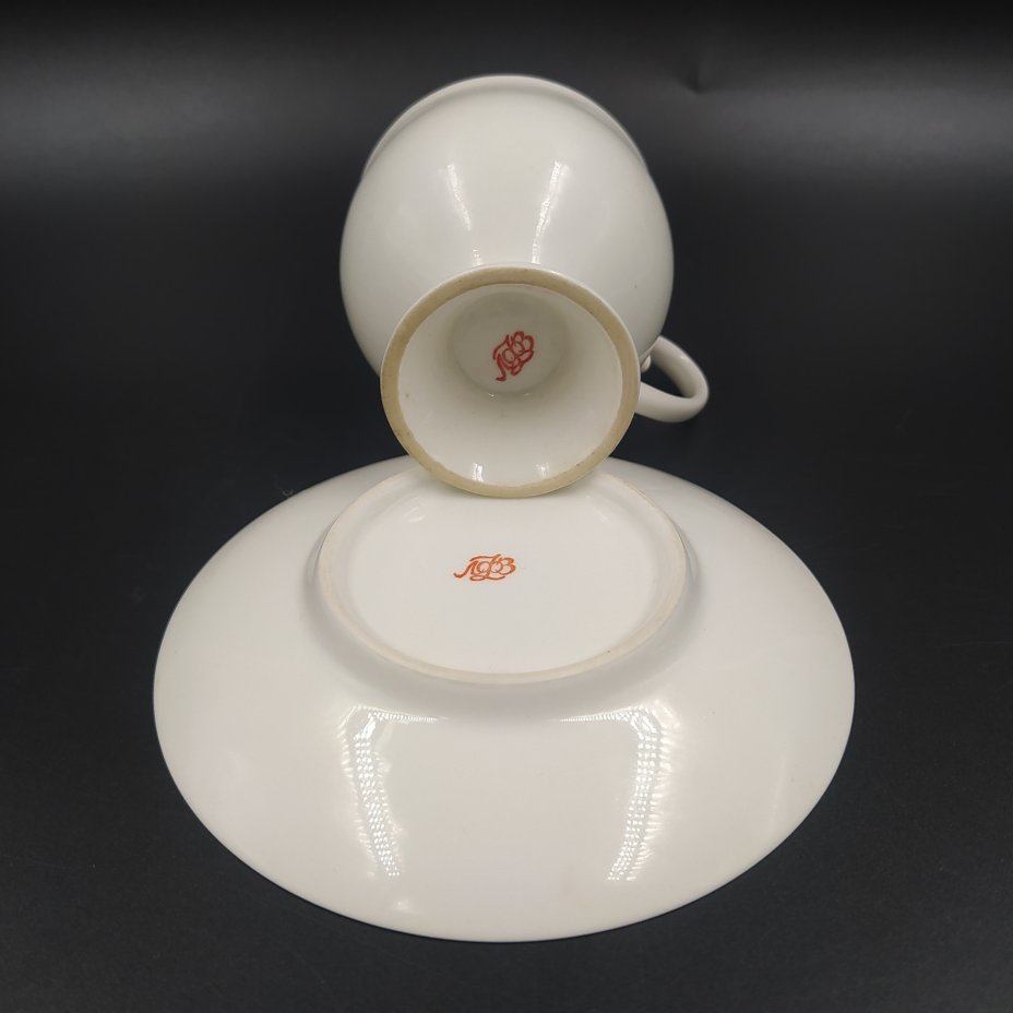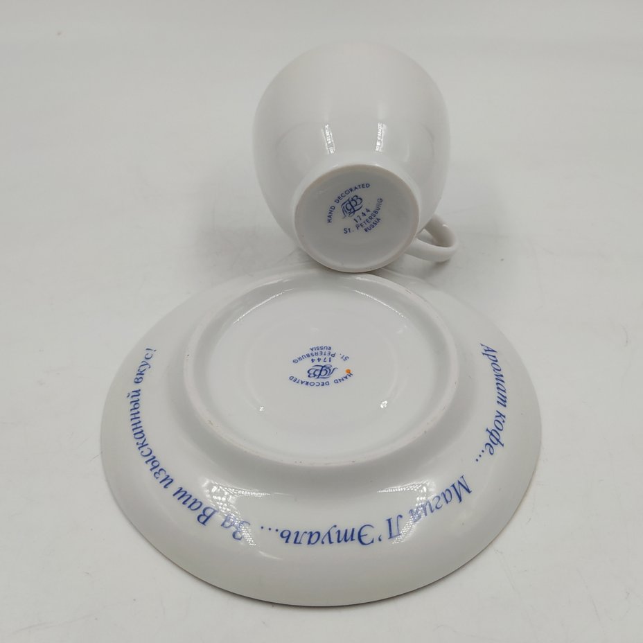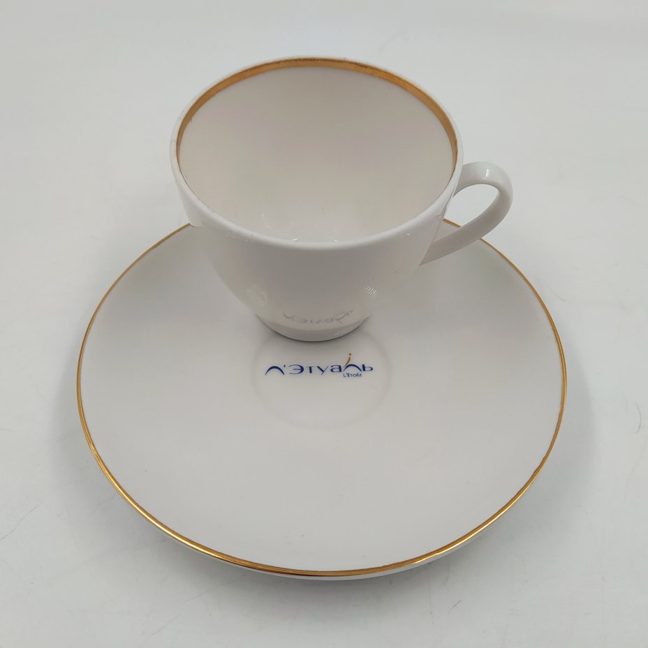 Пара кофейная с эмблемой "Лэтуаль", фарфор, отводка золотом, печать, Ленинградский фарфоровый завод (ЛФЗ), Российская Федерация, 2002-2006 гг.