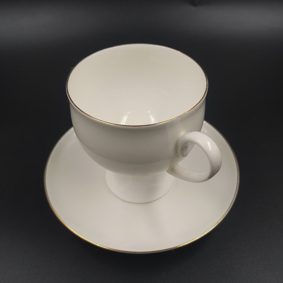 Пара кофейная "Золотая лента", автор формы Н.П. Славина, фарфор, отводка золотом, Ленинградский фарфоровый завод (ЛФЗ), Российская Федерация, 1992-2001 гг.