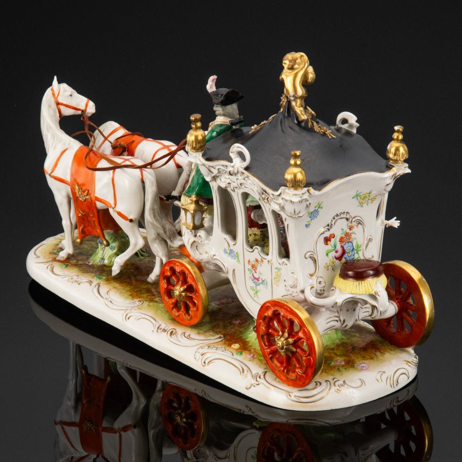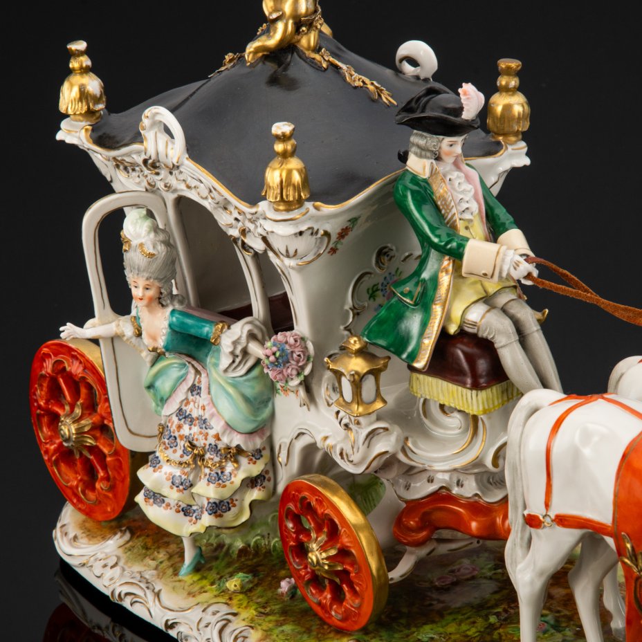 Статуэтка (скульптурная композиция) "Роскошный экипаж" ("Карета"), фарфор, роспись, золочение, Scheibe-Alsbach Porzellan, Европа, 1925-1972 гг.
