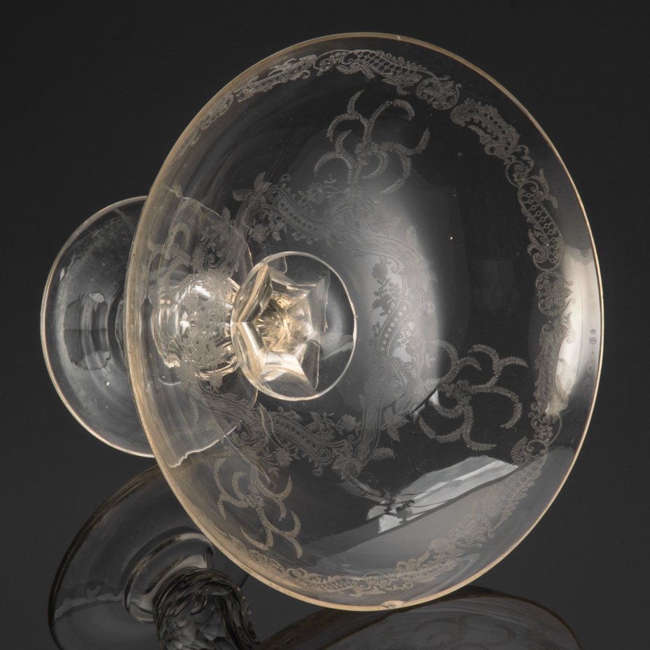 Ваза (фруктовница) с растительным декором, стекло, резьба, Мальцовский стекольный завод, Российская империя, 1900-1917 гг.