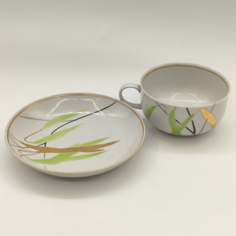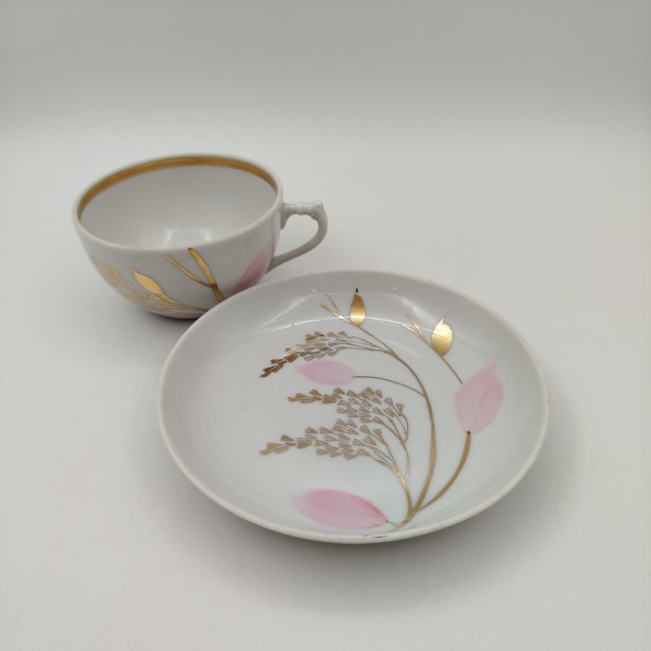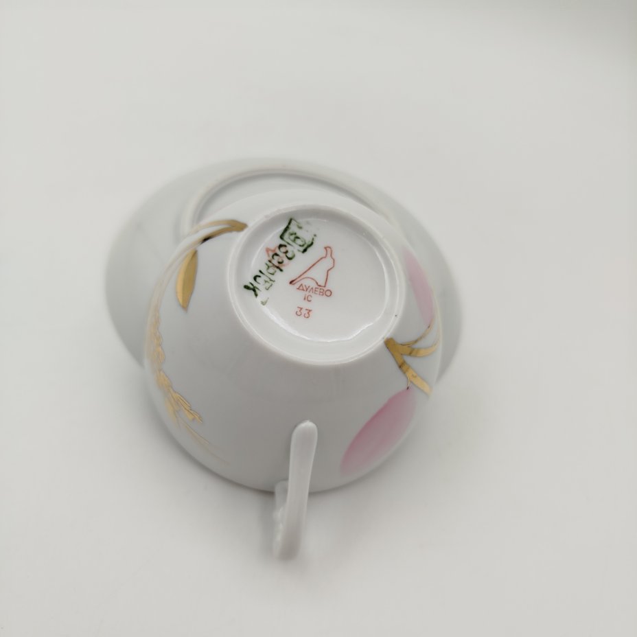 Пара чайная, украшенная нежным растительным орнаментом, фарфор, роспись, золочение, Дулевский фарфоровый завод (Дулёво), СССР, 1968-1991 гг.