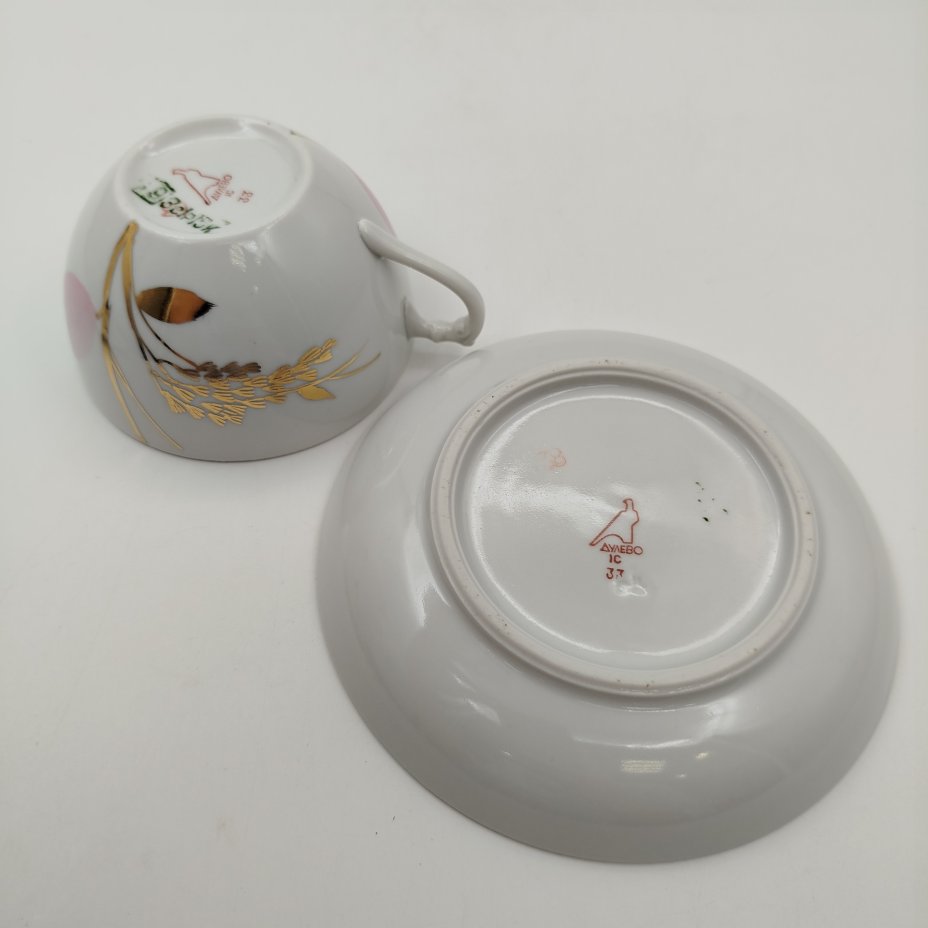 Набор чайных пар на 3 персоны (в подборе), фарфор, деколь, Дулевский фарфоровый завод (Дулёво), СССР, 1988-1989 гг.