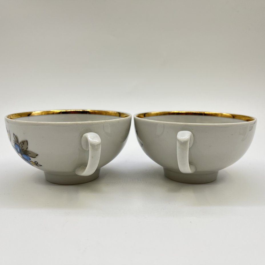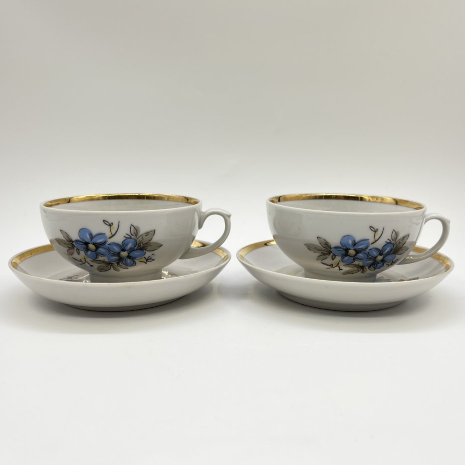 Набор чайных пар с цветочным декором на 2 персоны (в подборе), фарфор, деколь, золочение, Дулевский фарфоровый завод (Дулёво), СССР, 1968-1991 гг.