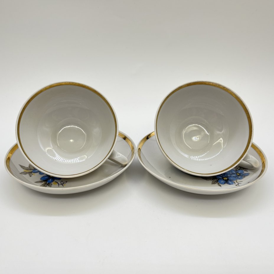 Чайная пара, украшенная сине-голубым цветочным декором в виде васильков, фарфор, деколь, Дулевский фарфоровый завод (Дулёво), СССР, 1953-1954 гг.