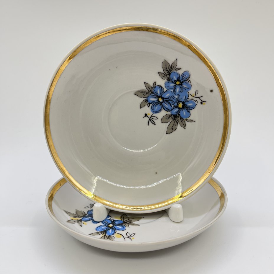 Чайная пара, украшенная сине-голубым цветочным декором, фарфор, деколь, Дулевский фарфоровый завод (Дулёво), СССР, 1953 г.