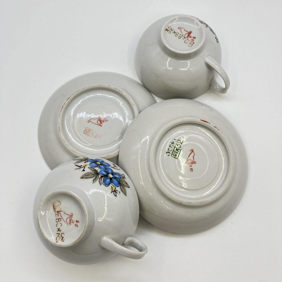 Набор из 2-х чайных пар "Хризантемы", фарфор, деколь, Дулевский фарфоровый завод (Дулёво), СССР, 1964-1968 гг.