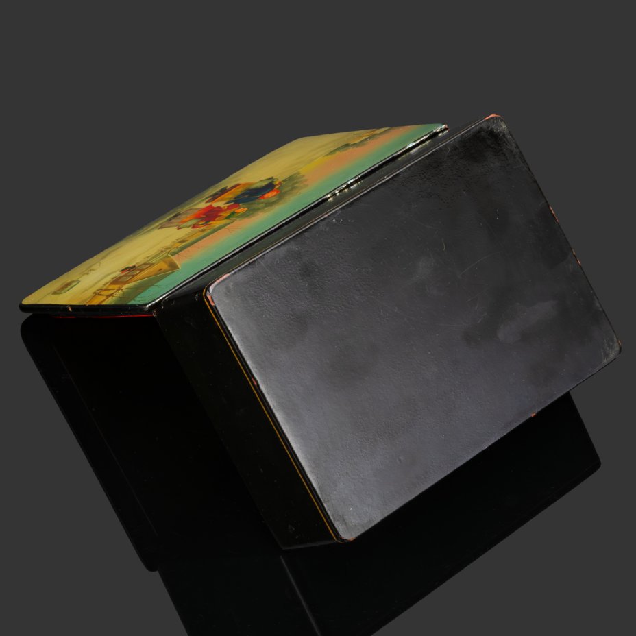 Шкатулка (лаковая миниатюра) "Соперницы" по картине Николая Касаткина, папье-маше, лак, роспись, письмо "по-сквозному", Федоскинская фабрика миниатюрной живописи (Федоскино), СССР, 1968 г.