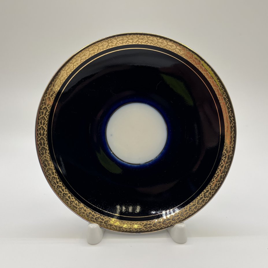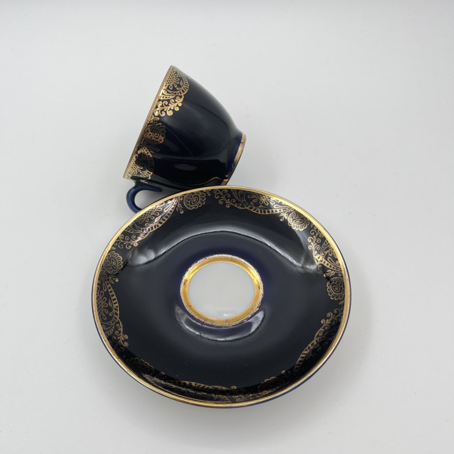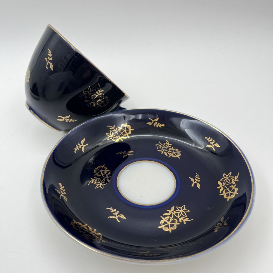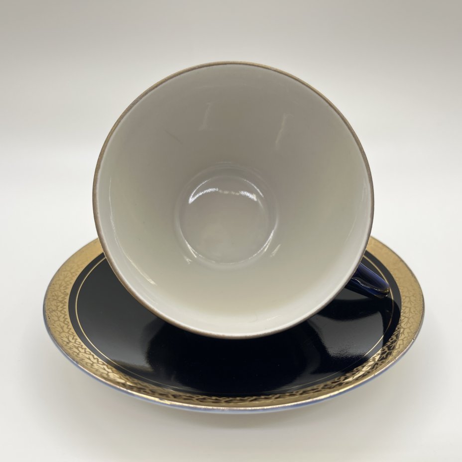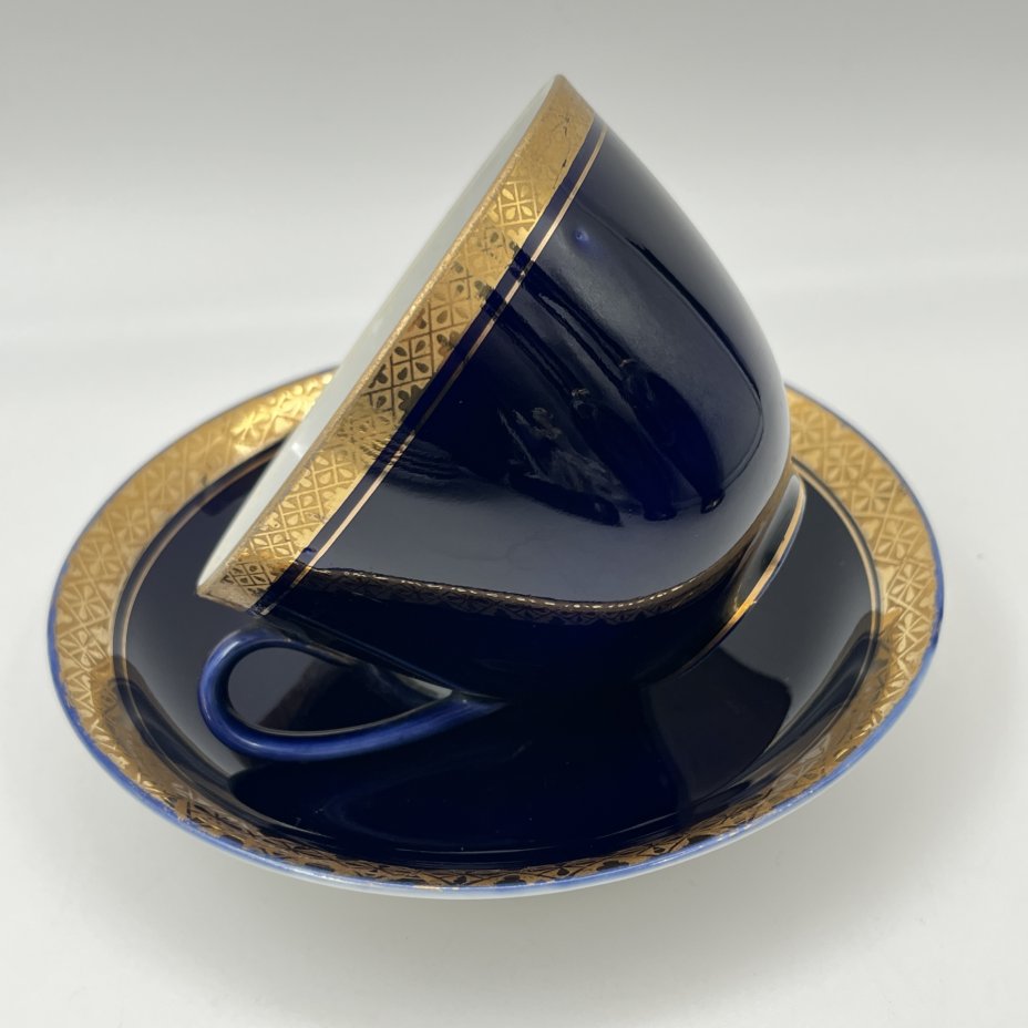 Чайная пара кобальтого оттенка, украшенная растительным декором, фарфор, крытье кобальтом, золочение, Ленинградский фарфоровый завод (ЛФЗ), СССР, 1970-1986 гг.
