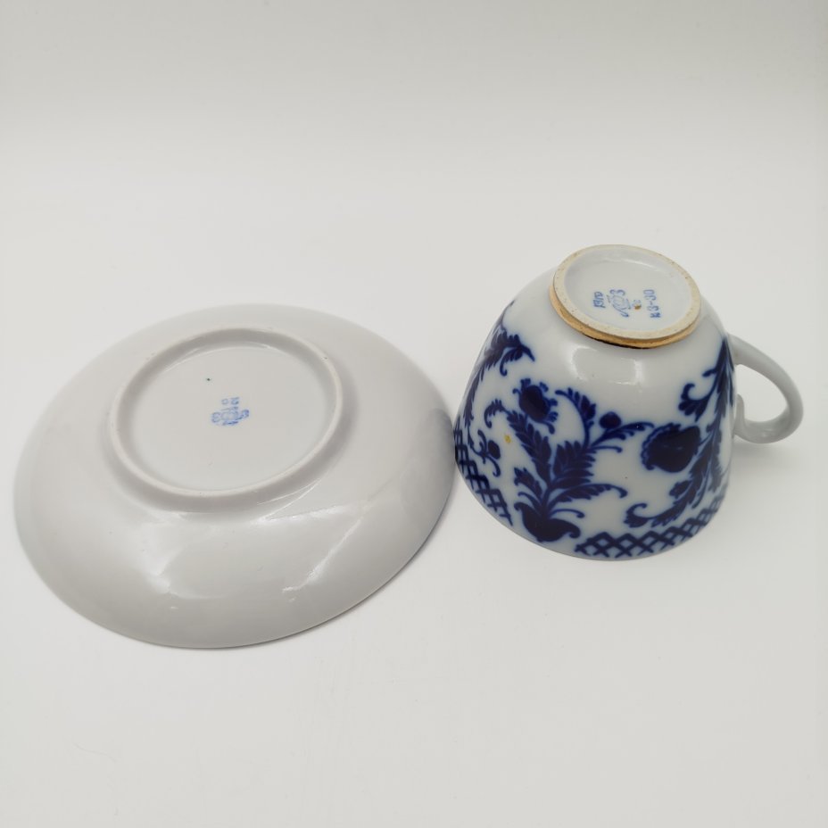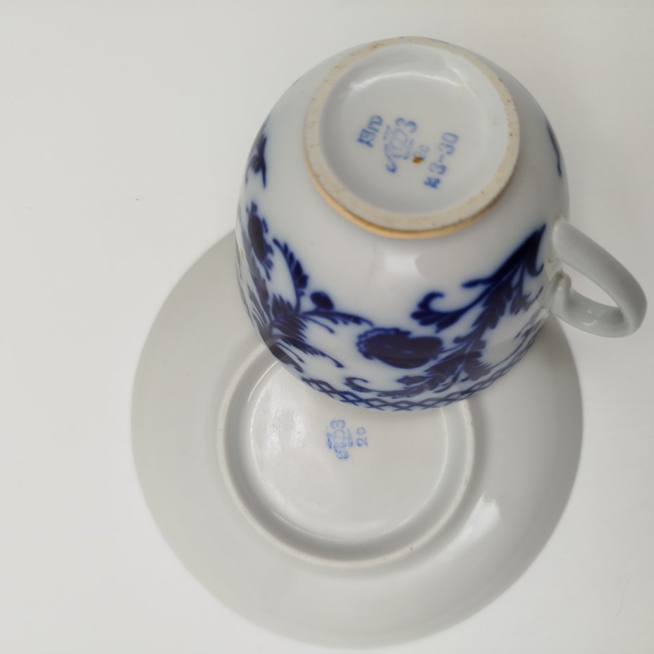 Чайная пара с растительным декором (подбор), фарфор, кобальт, золочение, Ленинградский фарфоровый завод (ЛФЗ), СССР, 1970-2000 гг.