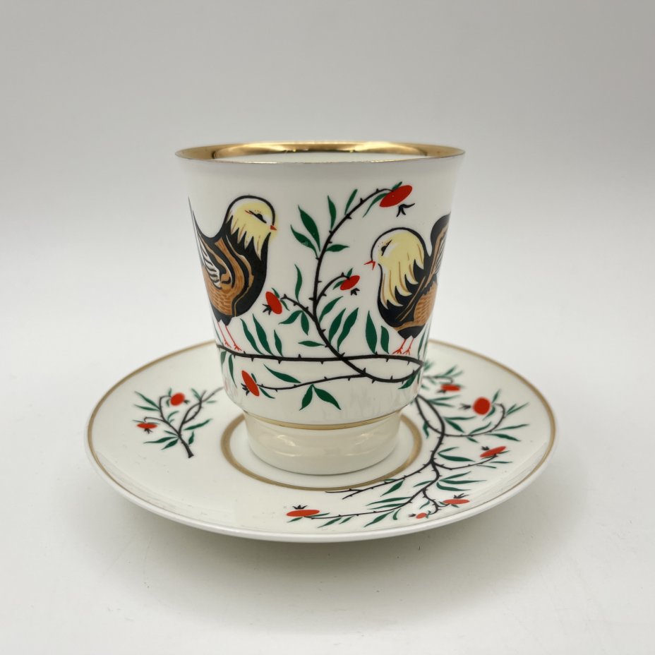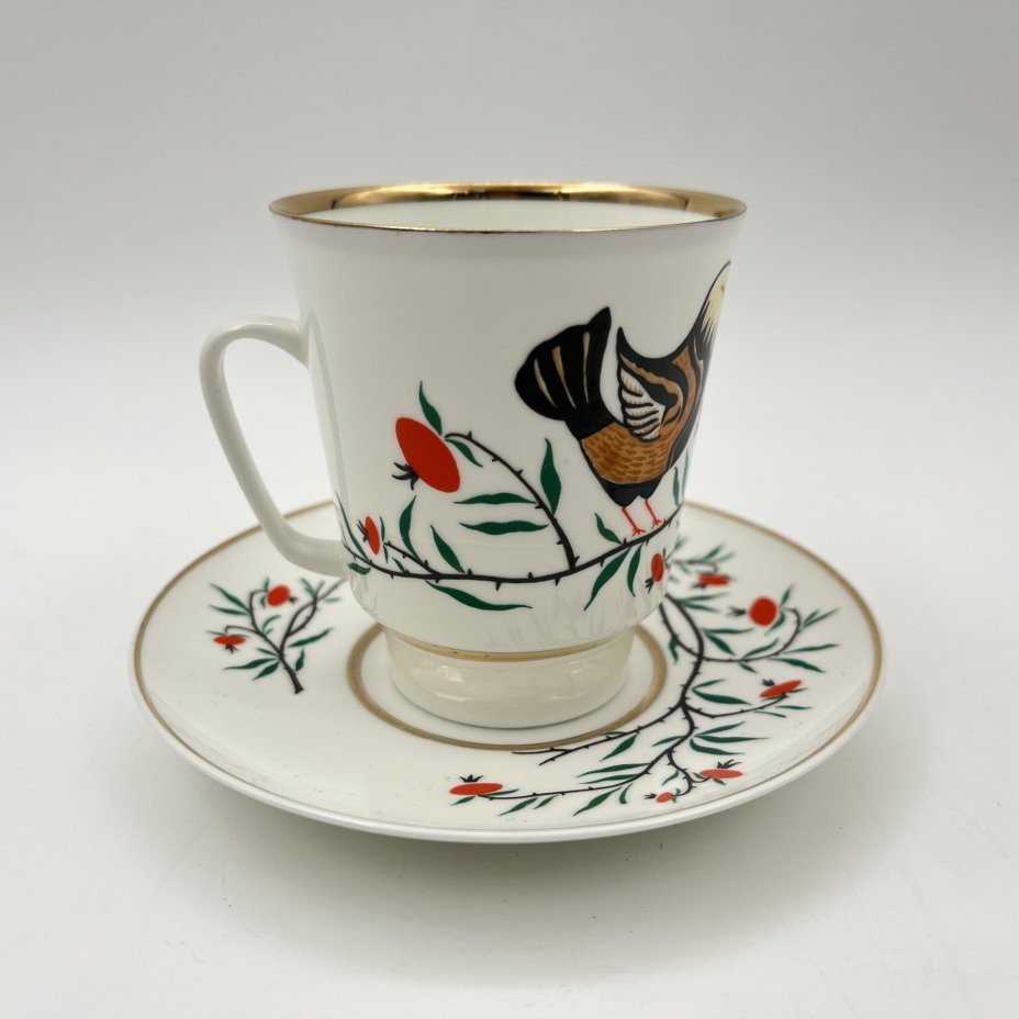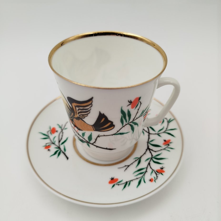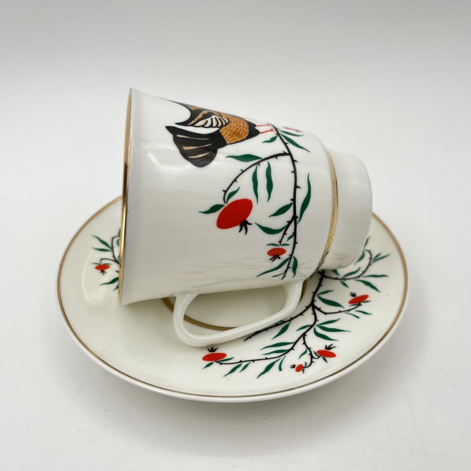 Пара кофейная "Птички", автор рисунка А.В. Щекатихина-Потоцкая, фарфор, деколь, золочение, Ленинградский фарфоровый завод (ЛФЗ), СССР, 1970-1986 гг.