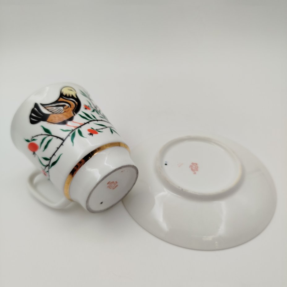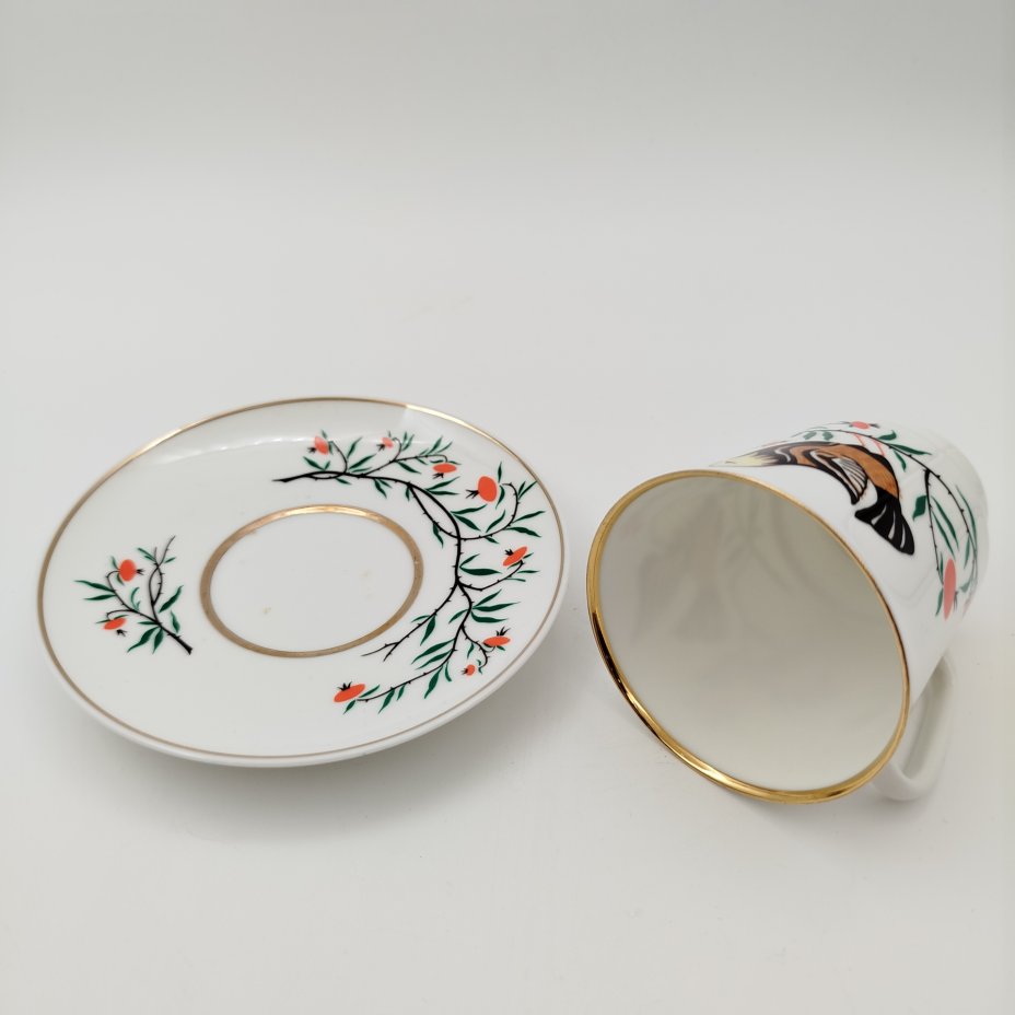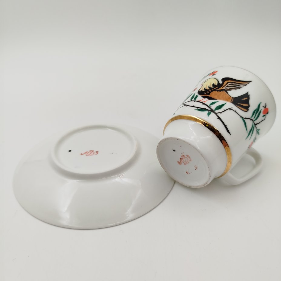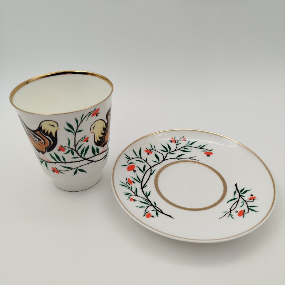 Пара кофейная "Птички", автор рисунка А.В. Щекатихина-Потоцкая, фарфор, деколь, золочение, Ленинградский фарфоровый завод (ЛФЗ), СССР, 1970-1986 гг.