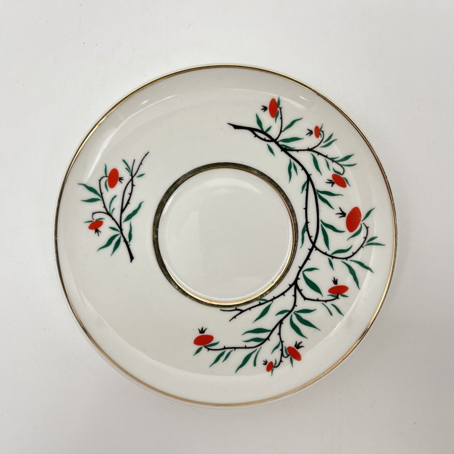 Пара чайная с изображением крыжовника и яблок, фарфор, деколь, Ленинградский фарфоровый завод (ЛФЗ), СССР, 1960-1970 гг.
